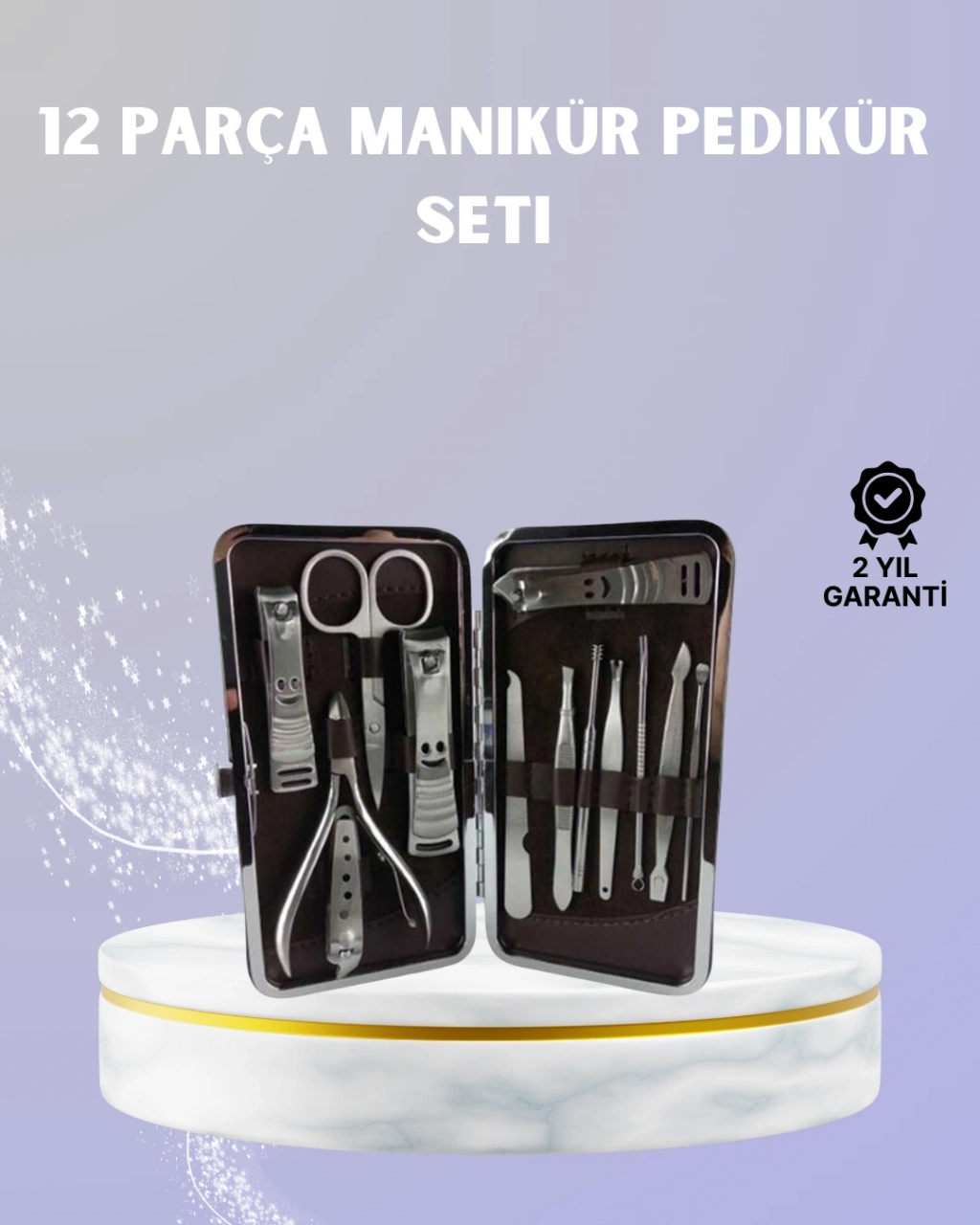 Profesyonel bakım kalitesini evinize taşıyan bu 12 parçalık kişisel bakım seti, el ve ayak bakımınızı eksiksiz yapmanız için tasarlanmıştır. Şık deri çantası, tüm parçaların düzenli şekilde saklanmasını sağlarken taşınabilirliğiyle öne çıkar. Set içerisinde kulak çekme aparatı, pense, farklı boyutlarda tırnak makasları, törpü, cımbız, manikür bıçağı, akne iğnesi ve çok amaçlı makas yer alır. Paslanmaz çelik malzemesi sayesinde uzun ömürlüdür ve korozyona karşı dayanıklıdır. Seyahatlerde yanınızda rahatlıkla taşıyabilir, kişisel bakımınızı her yerde sürdürebilirsiniz.