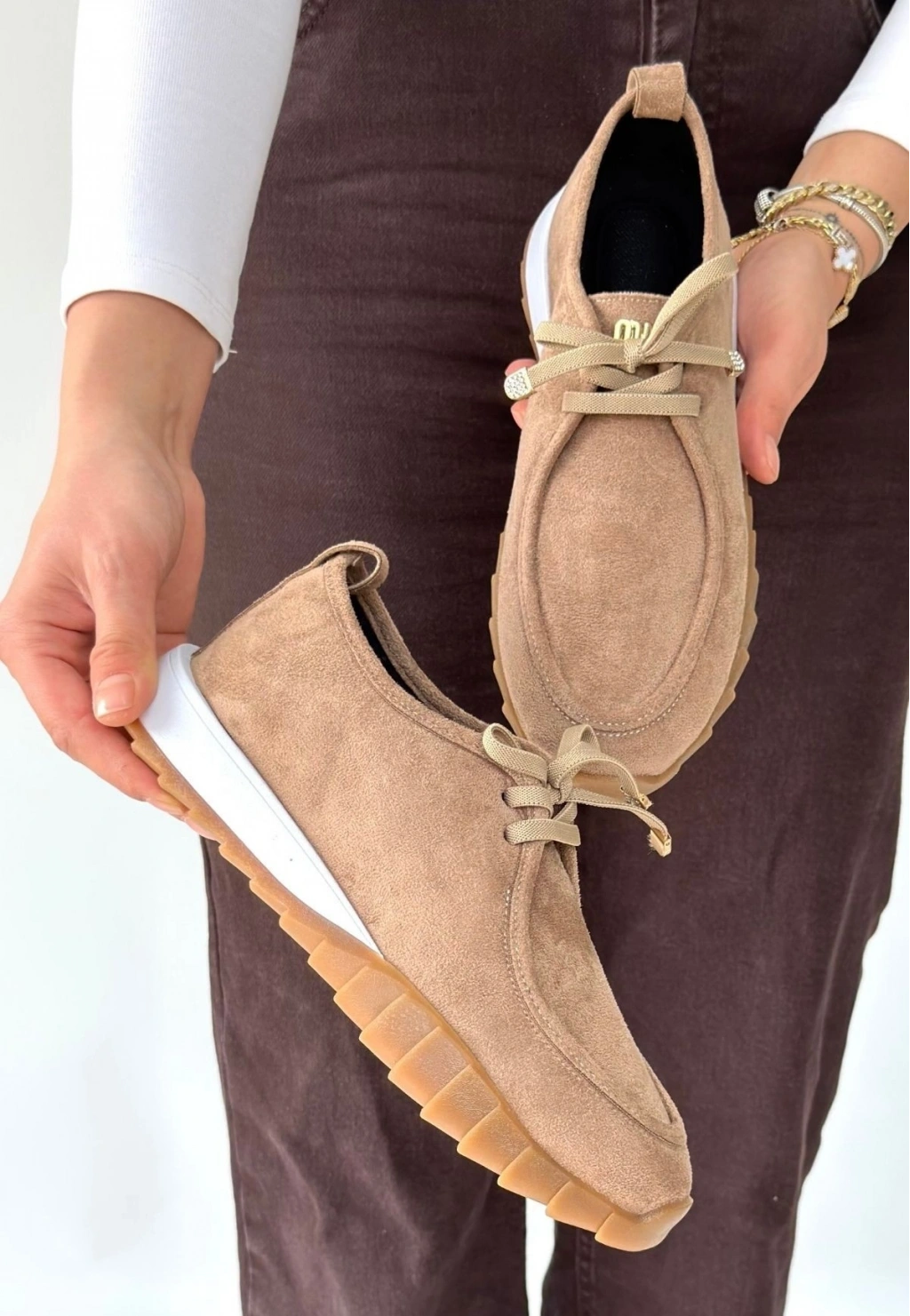 • Sier Bej Süet Bağcıklı Spor Ayakkabı