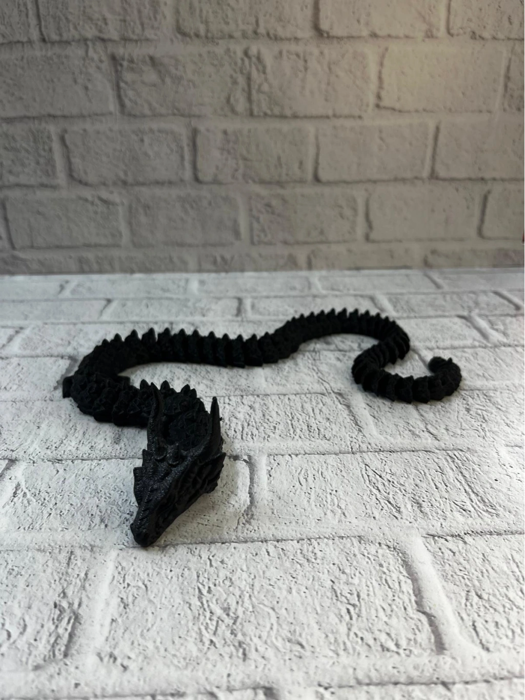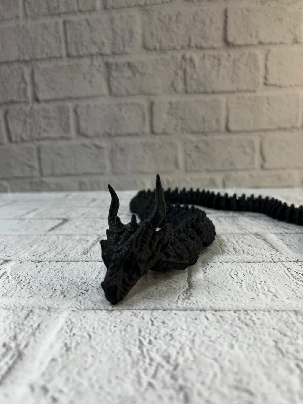 Siyah Hareketli Ejderha Figürü Esnek Gövdeli Dekoratif Tasarım 60 cm