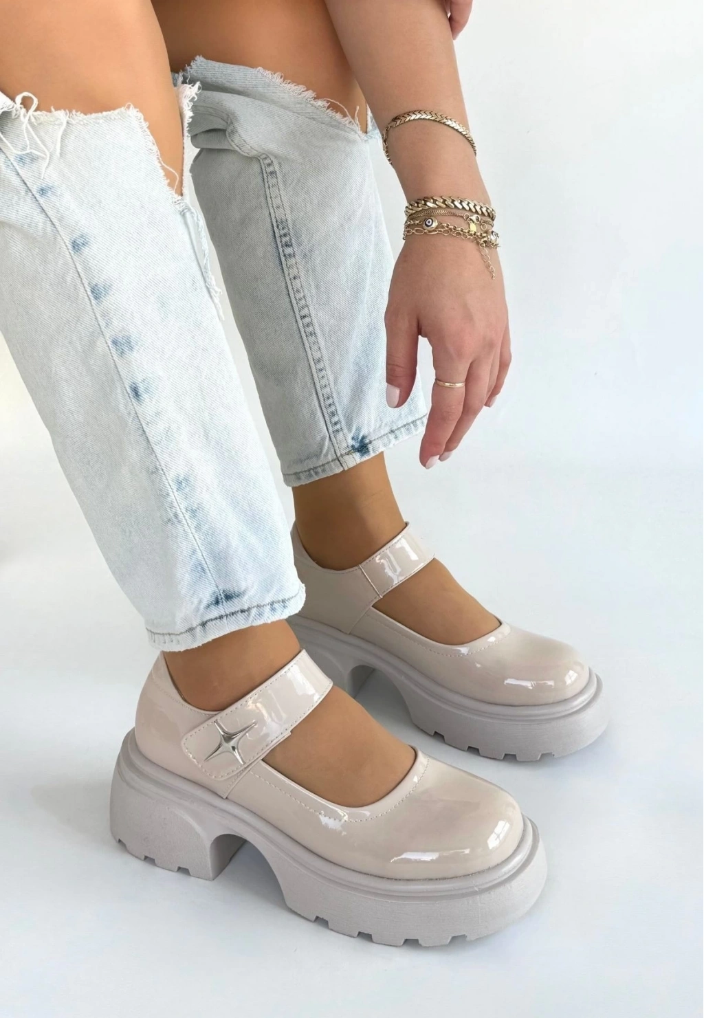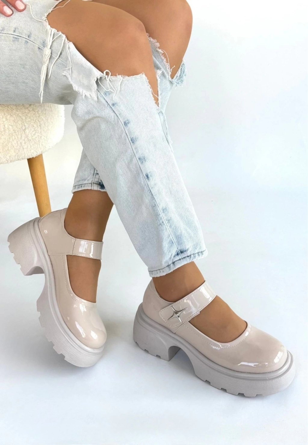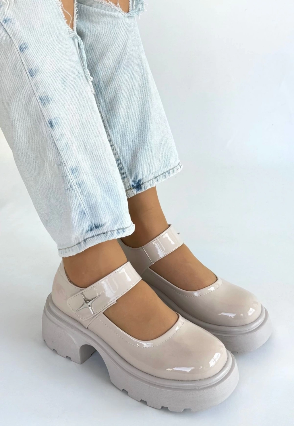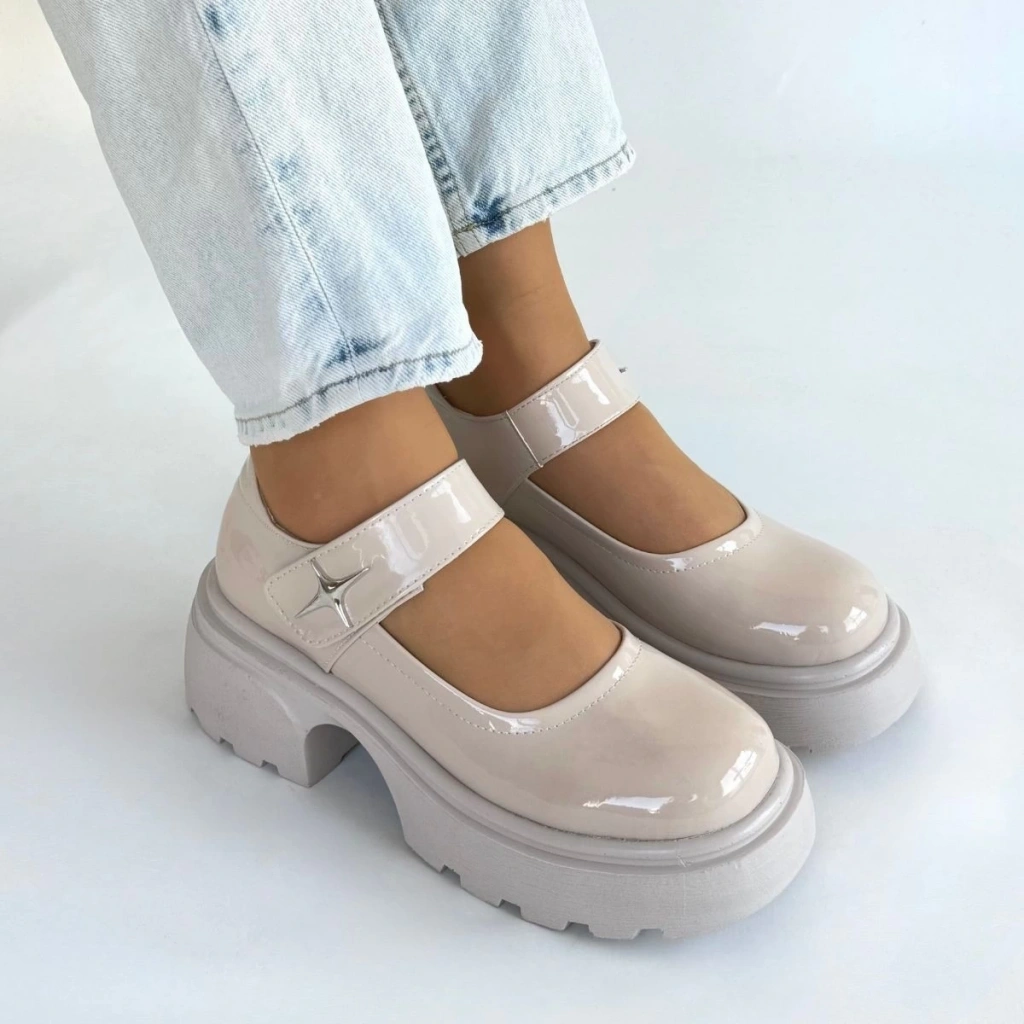 • Siyat Bej Rugan Dolgu Topuk Oxford Ayakkabı