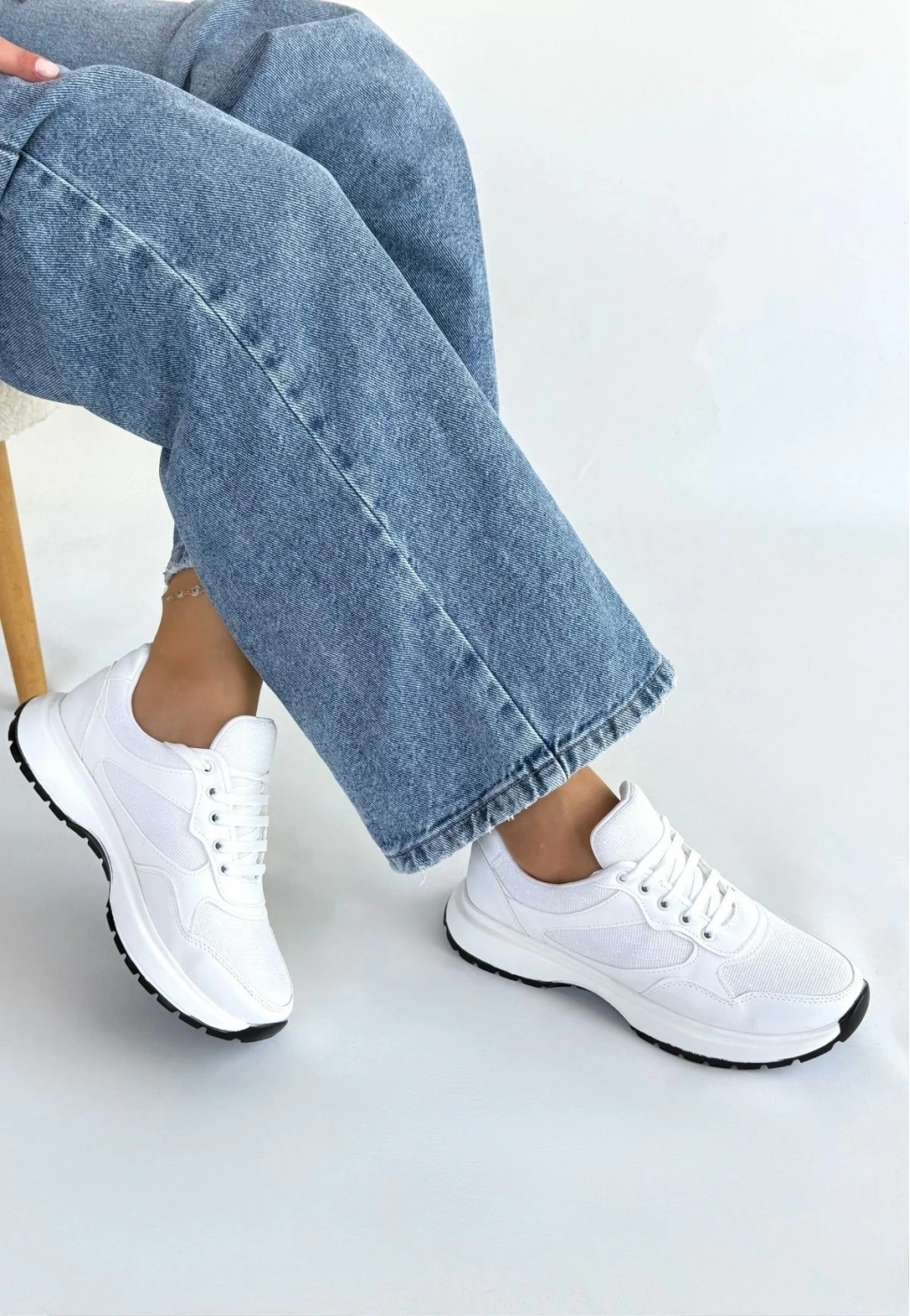 • Slar Beyaz Cilt Bağcıklı Spor Ayakkabı