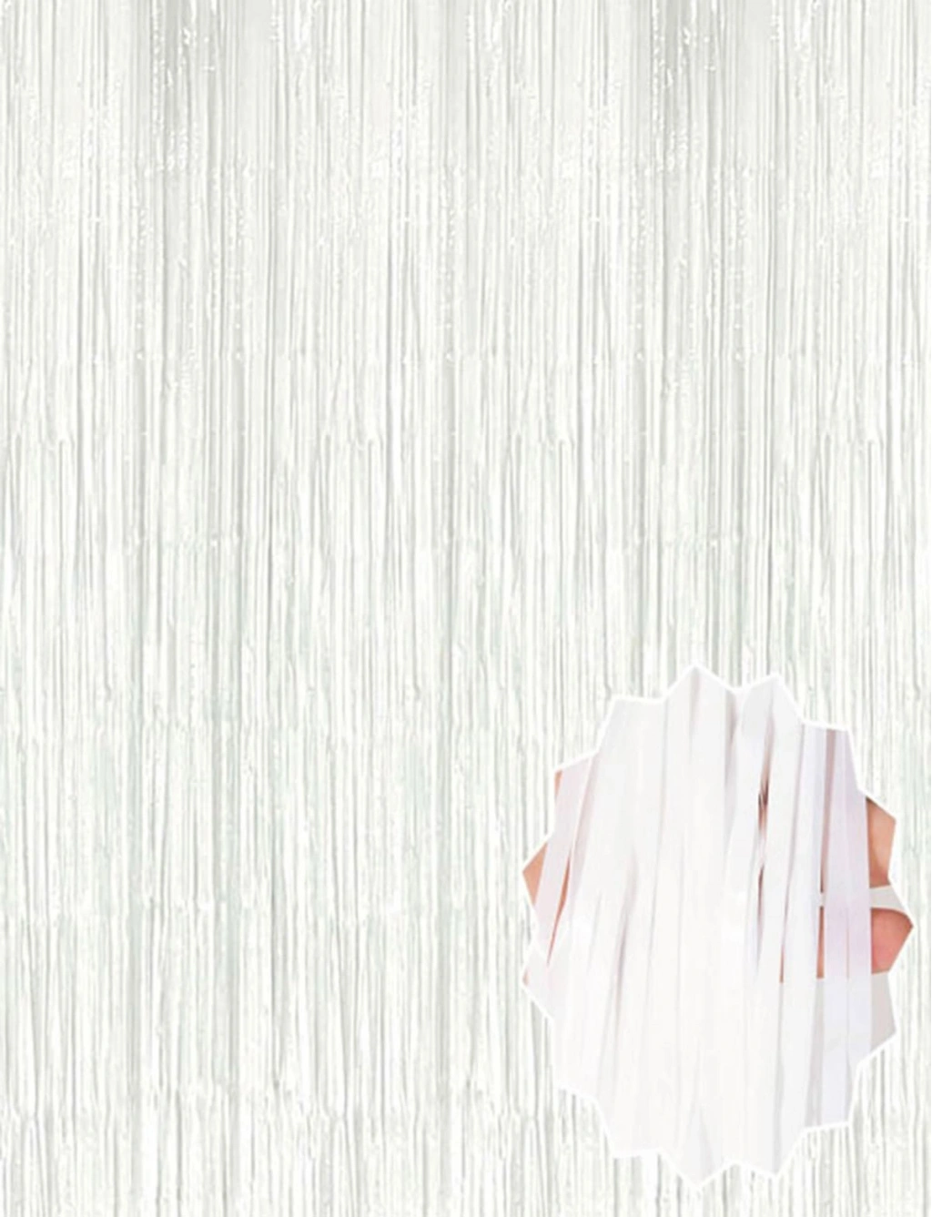 Parti organizasyonlarınızda sadece kapı değil duvar, perde gibi alanları da süsleyebileceğiniz Işıltılı Beyaz Püsküllü Perde.