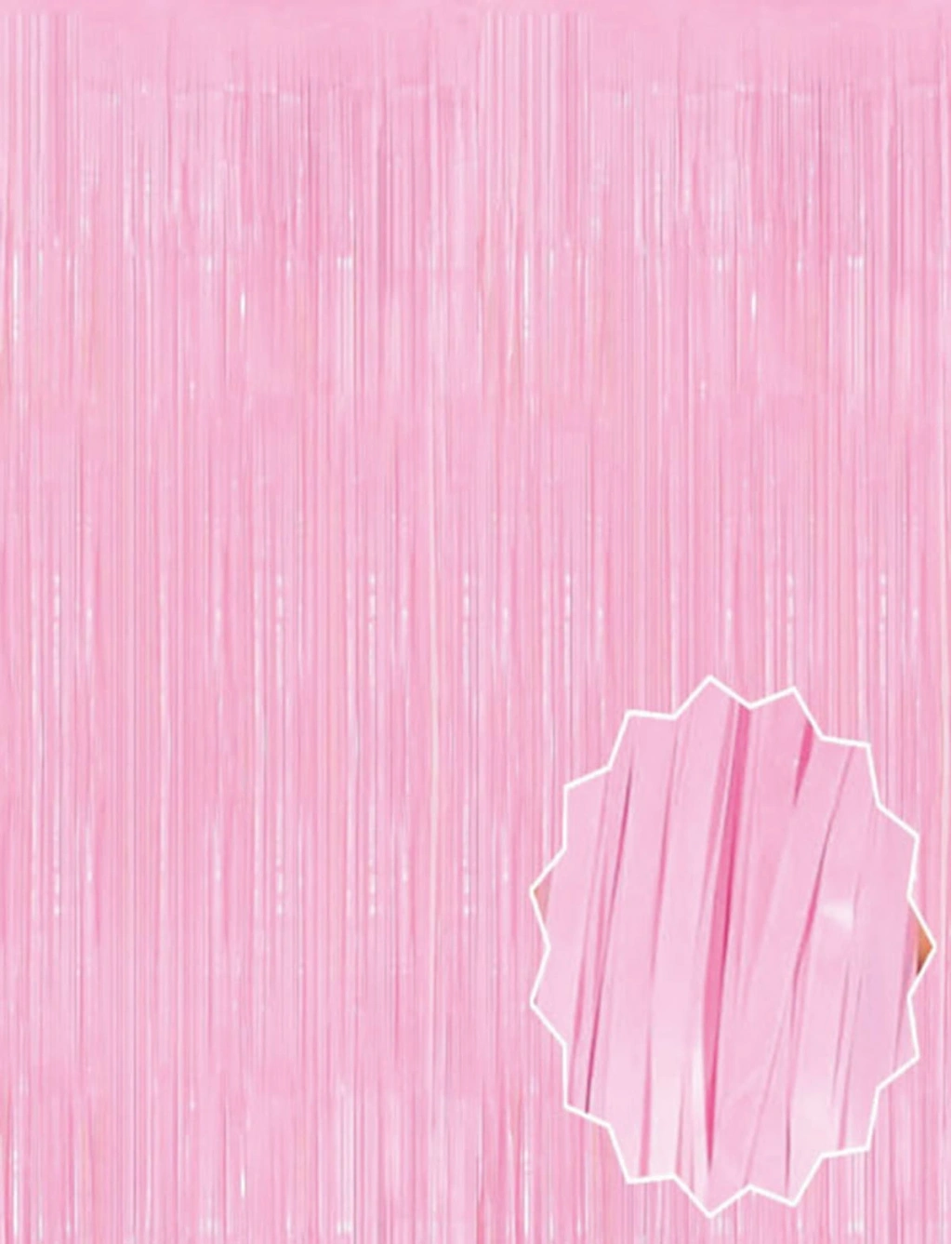 Parti dekorasyonlarının vazgeçilmezi olan pastel pembe püsküllü fon perde, yumuşak tonları ve ışığı yansıtan yapısı ile doğum günü, baby shower, bekarlığa veda, cinsiyet partisi ve fotoğraf çekimleri için mükemmel bir arka plan oluşturur. 1 metre en ve 2 metre boyutları sayesinde kapı, duvar veya masa arkası süslemesinde kullanıma uygundur. Kolayca yapıştırılır ve zarar vermeden sökülebilir. Etkileyici bir görünüm için birden fazla perde yan yana da kullanılabilir.