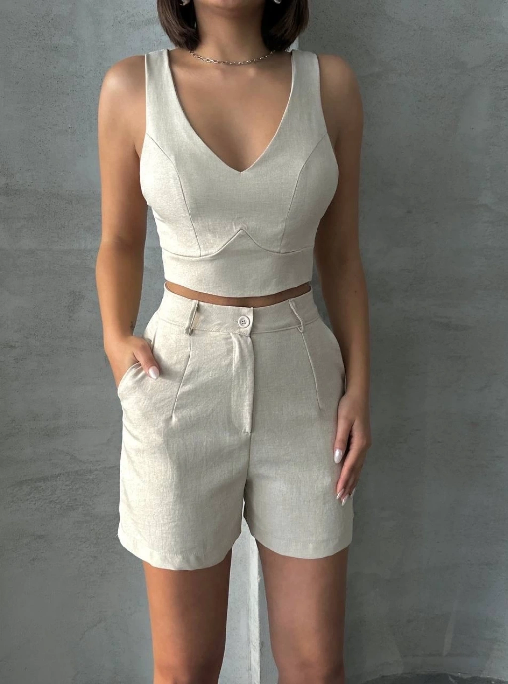 KAZAX şortlu keten takım ile kendinizi özgür hissedin, tarzınızı yansıtın!