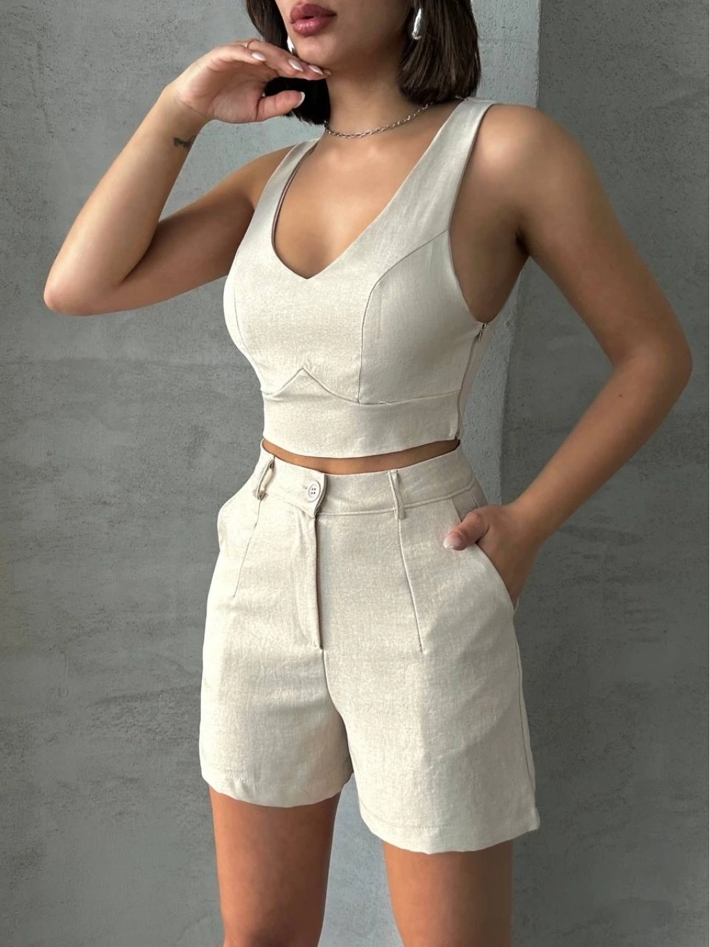 Şıklığı ve rahatlığı bir arada sunan KAZAX şortlu keten takımı, şıklığı seven kadınların favorisi olmaya aday. İster günlük hayatta, ister özel bir davette tercih edebileceğiniz bu takım, tarzınıza şıklık katacak.