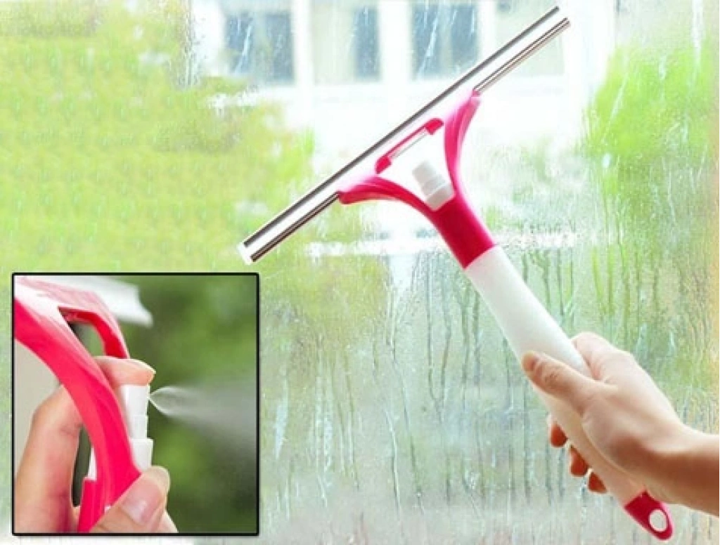 Pratik ve zamandan tasarruf ederek cam silmeyi en kolay hale getirecek Su Hazneli ve Spreyli Cam Silme Aparatı.