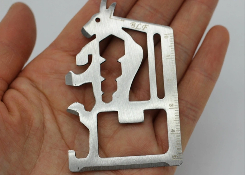 - Kredi kartı boyutunda ve paslanmaz çelik malzemeden üretilmiştir.