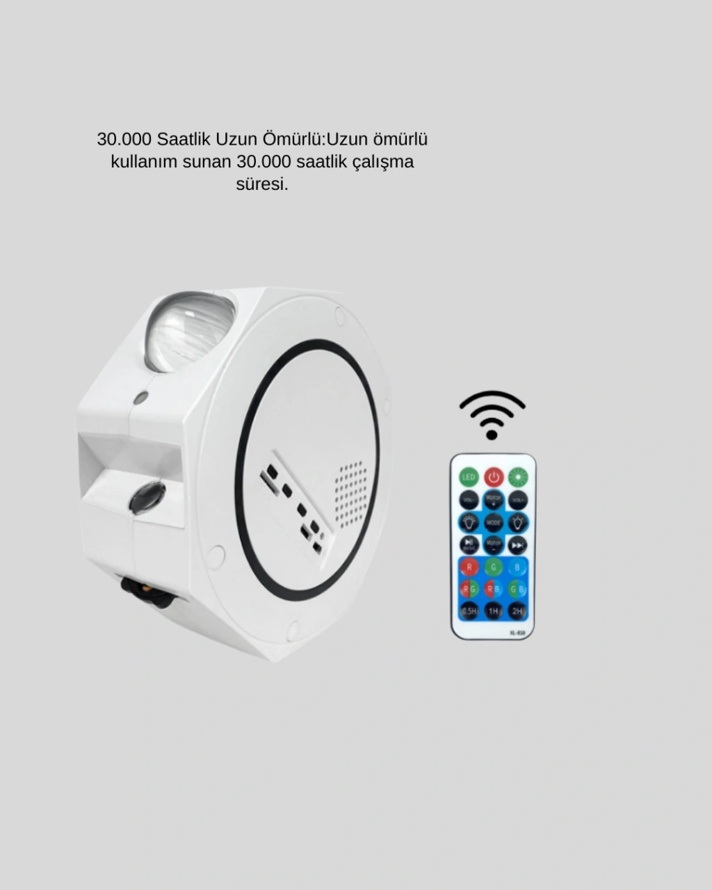 Bu 360° döndürülebilir gökyüzü projektörü, ışık açısını serbestçe ayarlama imkânı sunarak en ideal projeksiyon deneyimini sağlar. Yıldızlı gökyüzü efektleri, mekâna derinlik kazandırarak görsel olarak etkileyici bir ortam oluşturur.Çok yönlü aydınlatma modları sayesinde farklı ambiyanslar yaratabilirsiniz. Sakinleştirici ışık geçişleri, meditasyon ve yoga için huzurlu bir ortam sunarken; daha canlı efektler oyun ve eğlence anlarını zenginleştirir.Uzaktan kumanda ve zamanlayıcı özelliği, kullanım kolaylığı sağlar. Otomatik kapanma fonksiyonu, özellikle gece kullanımı için idealdir. Kompakt tasarımı sayesinde kolay taşınır ve farklı odalarda rahatlıkla kullanılabilir.