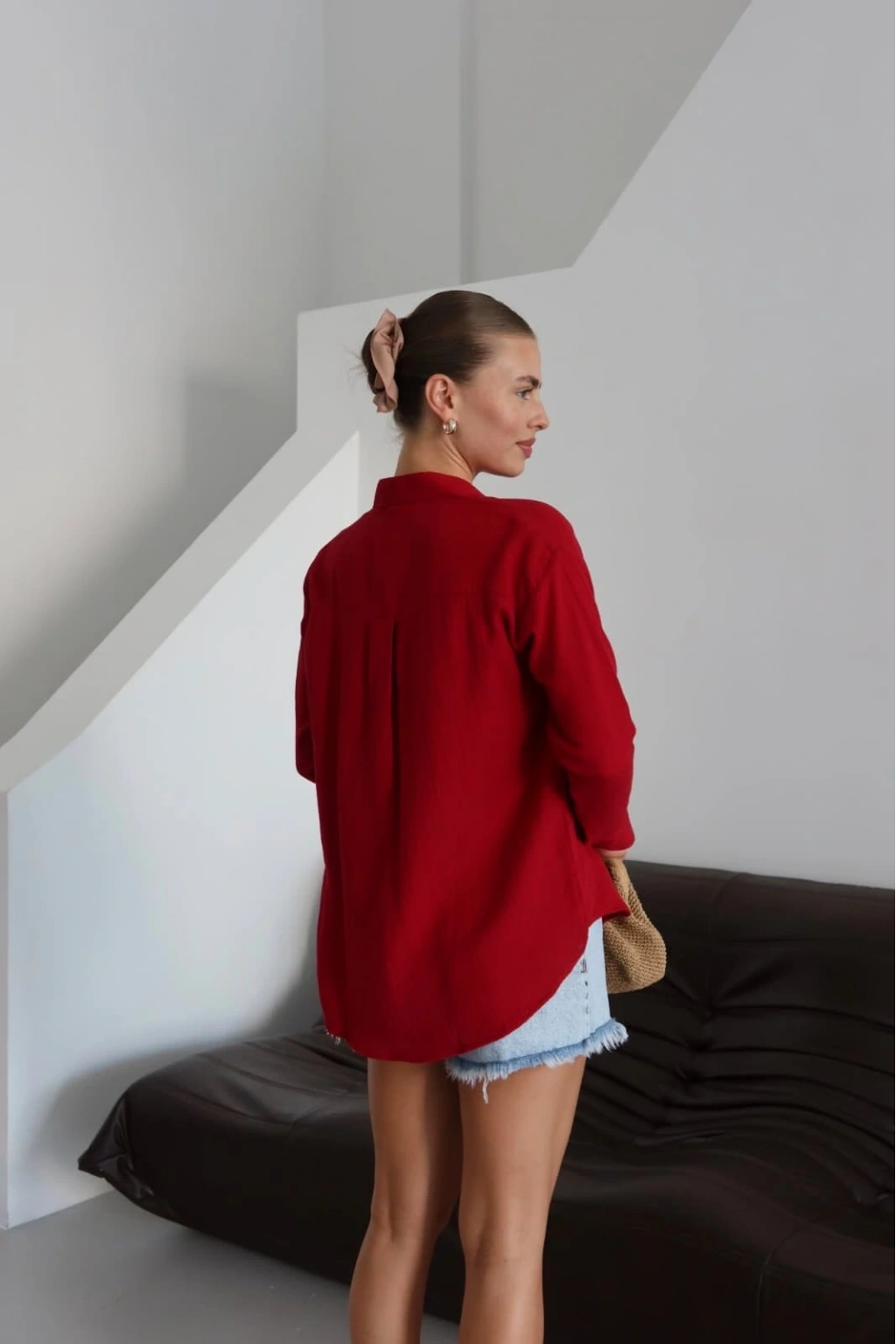 Şıklığı ve rahatlığı bir arada sunan Tek Cep Müslin Gömlek ile tarzınızı ön plana çıkarın. Bordo rengi ile dikkat çeken gömlek, şık detaylarıyla göz kamaştırıyor.