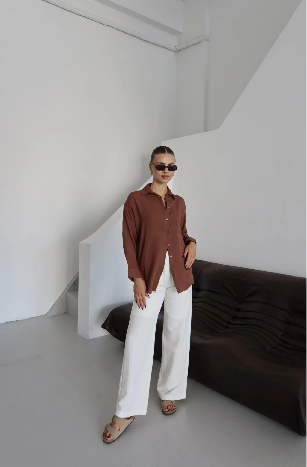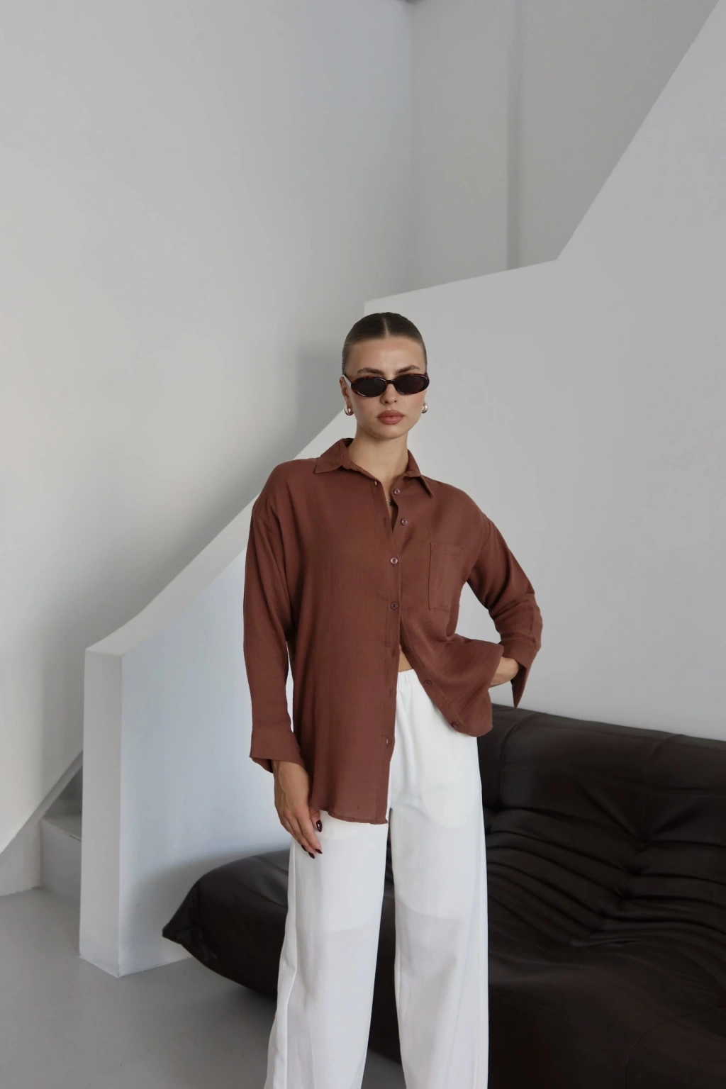 Tek cepli müslin gömlek kahve pt