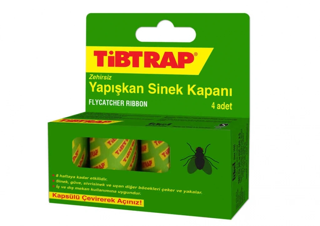 Sinekler ile mücadelede tüm kapalı ve açık alanlarda güvenle kullanılabilen çift taraflı yapışkan tuzaktır. Zehirsizdir. Yapışkan özelliğini uzun