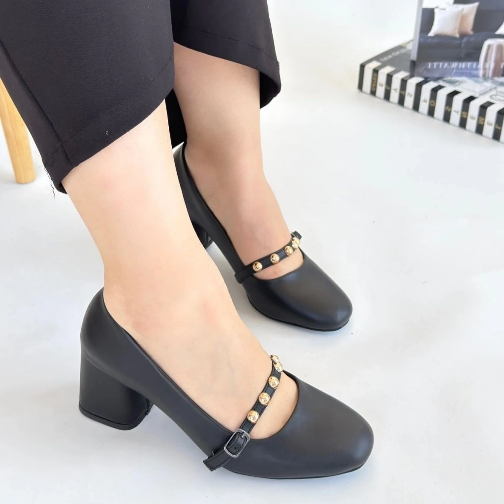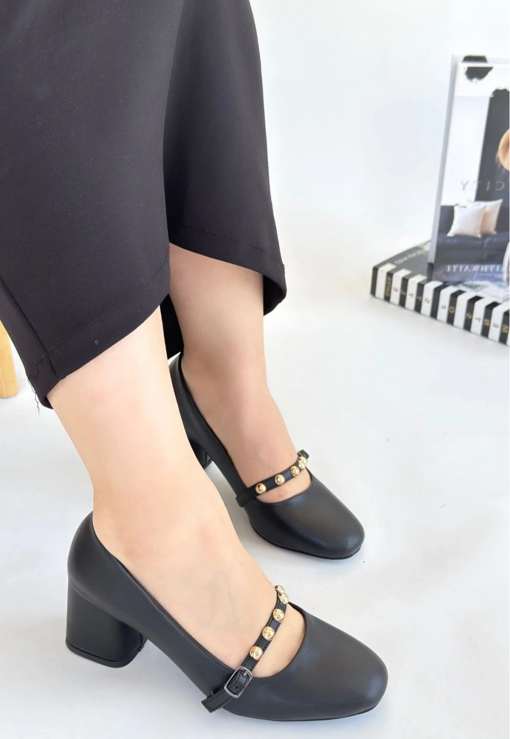 • Tino Siyah Cilt Topuklu Ayakkabı