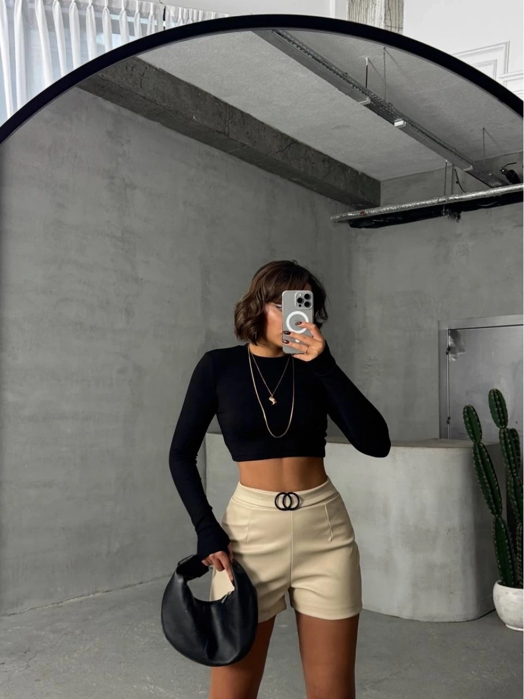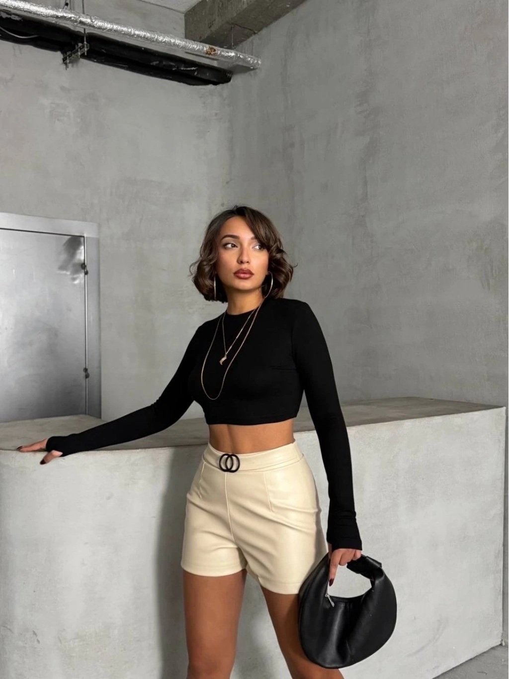 • Tokalı deri şort h24444