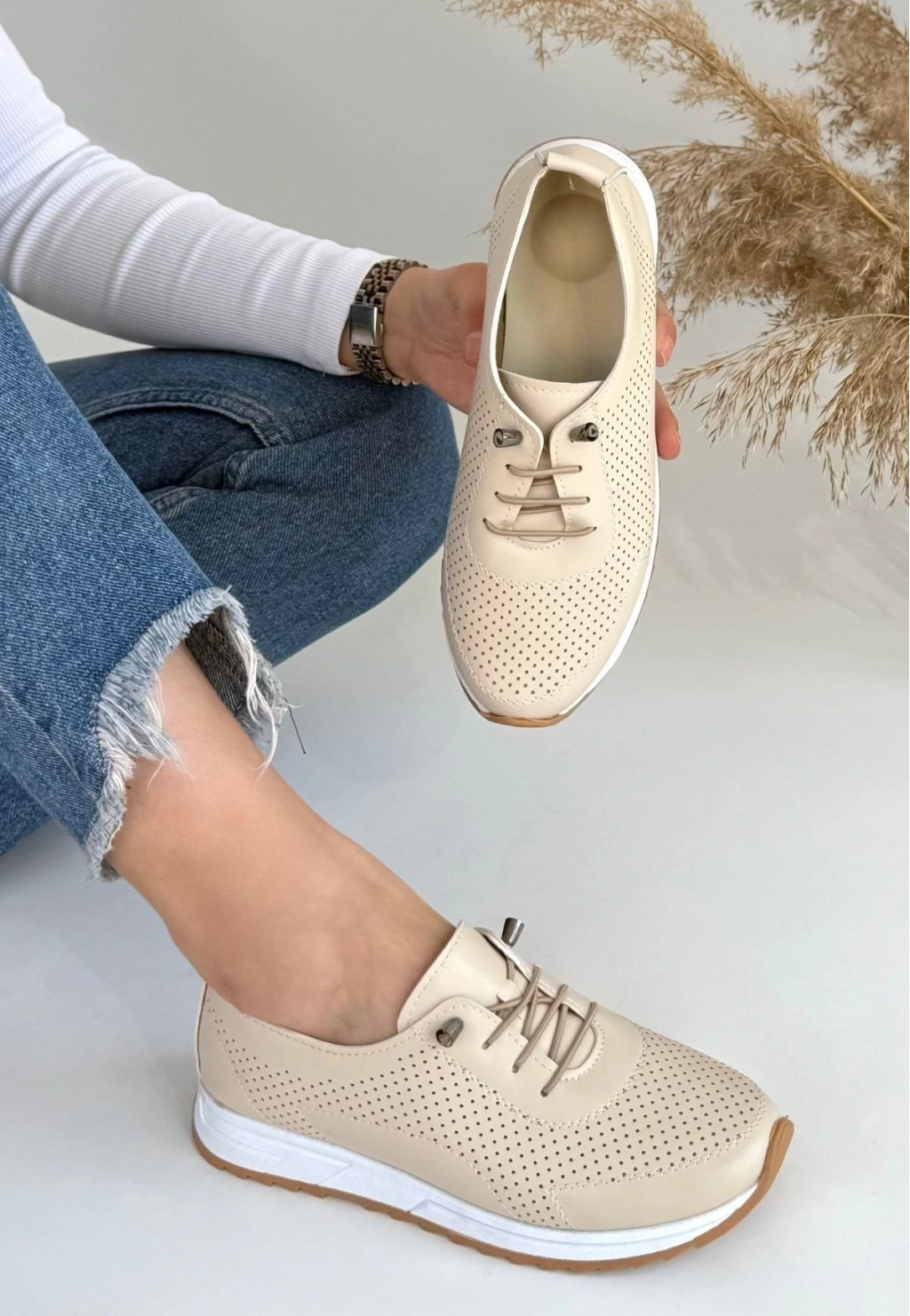 Tone Bej Cilt Bağcıklı Spor Ayakkabı
