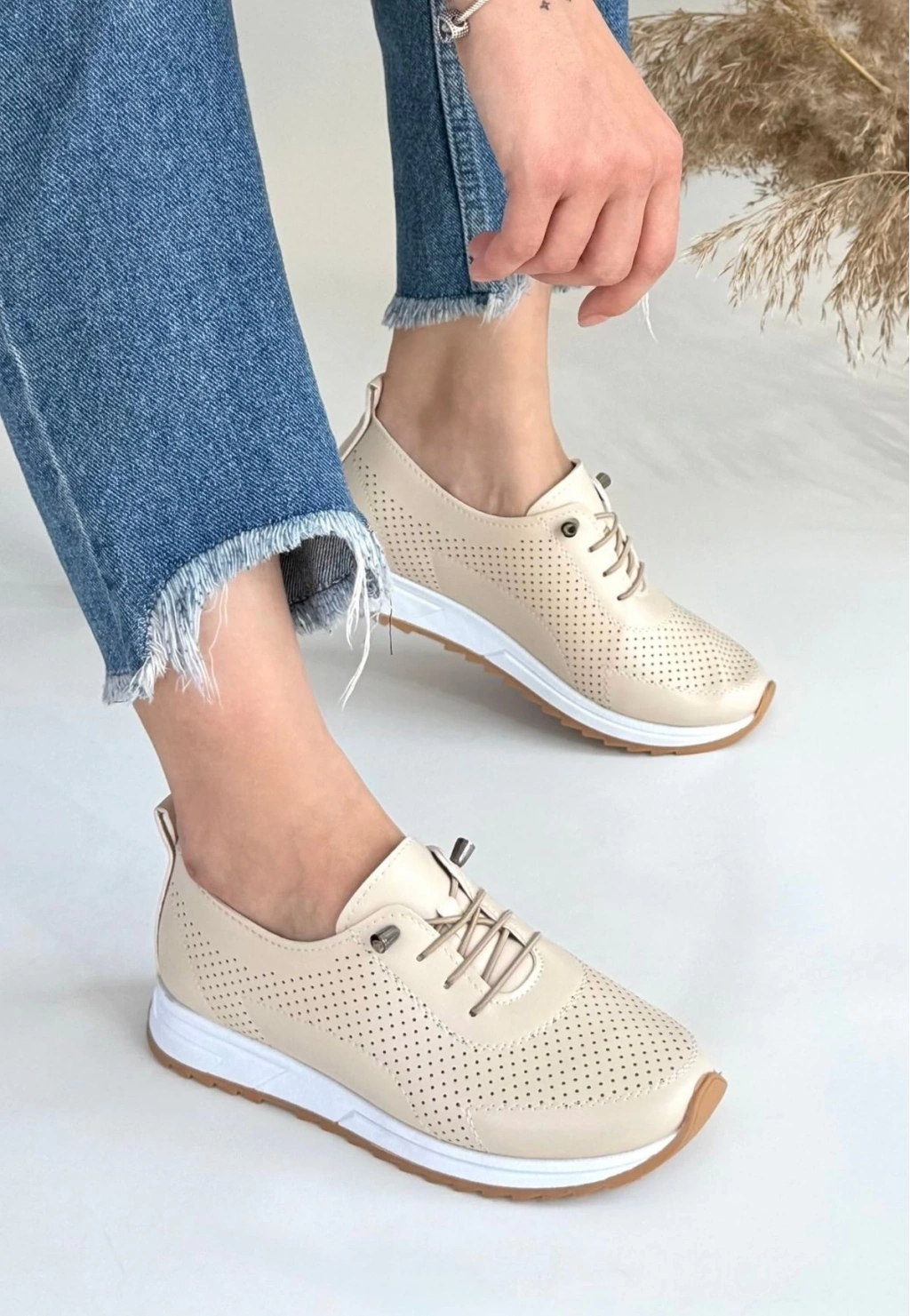 • Tone Bej Cilt Bağcıklı Spor Ayakkabı