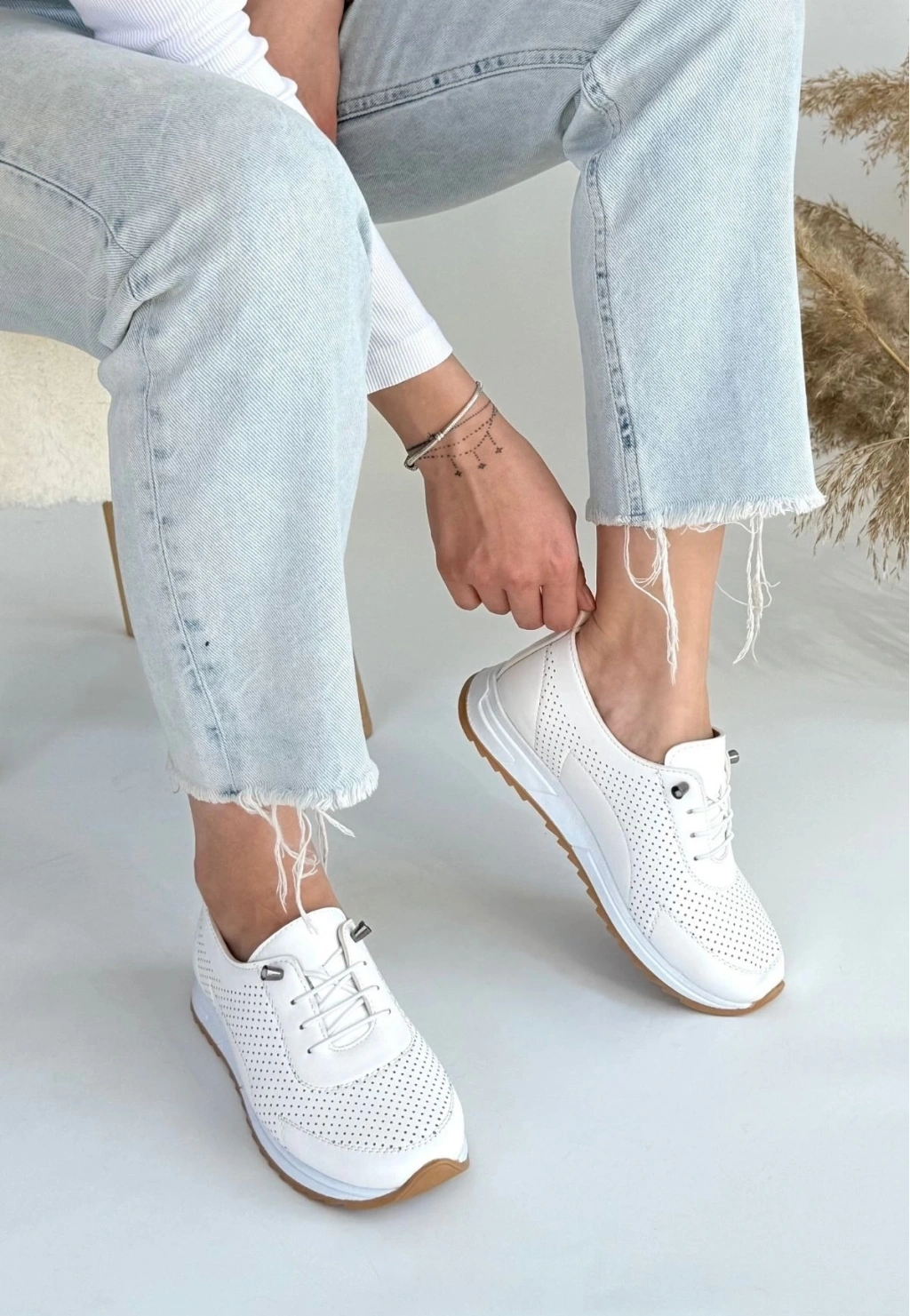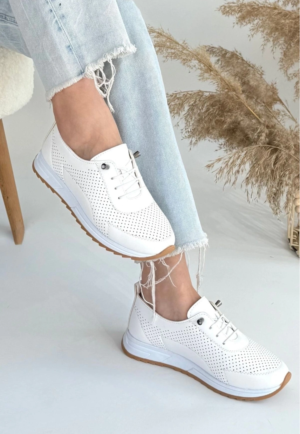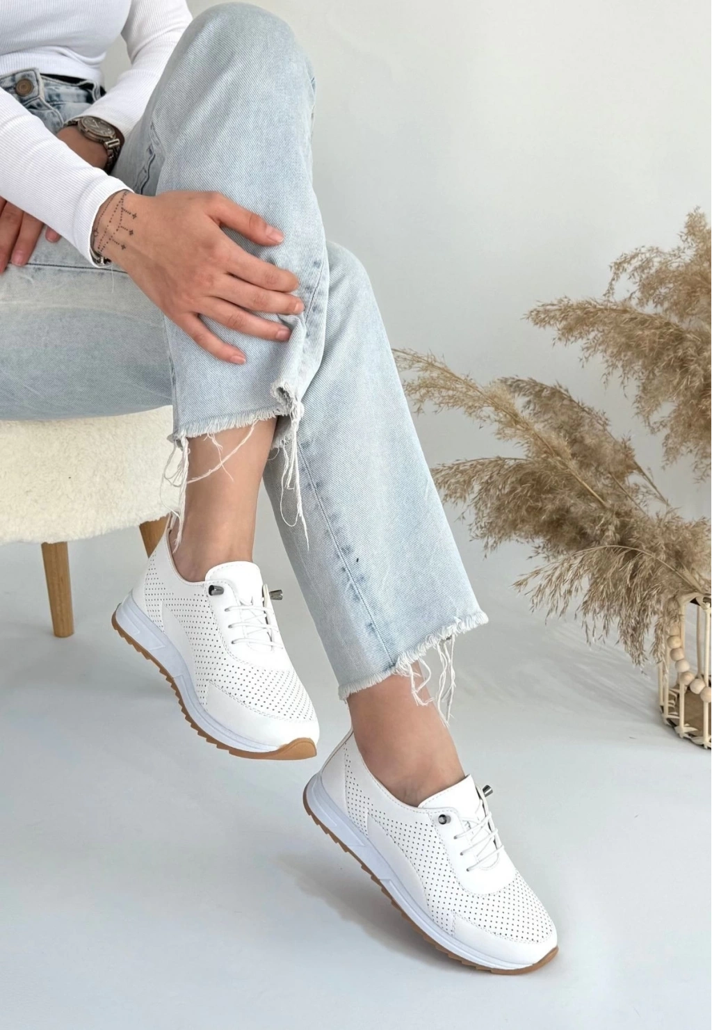 • Tone Beyaz Cilt Bağcıklı Spor Ayakkabı