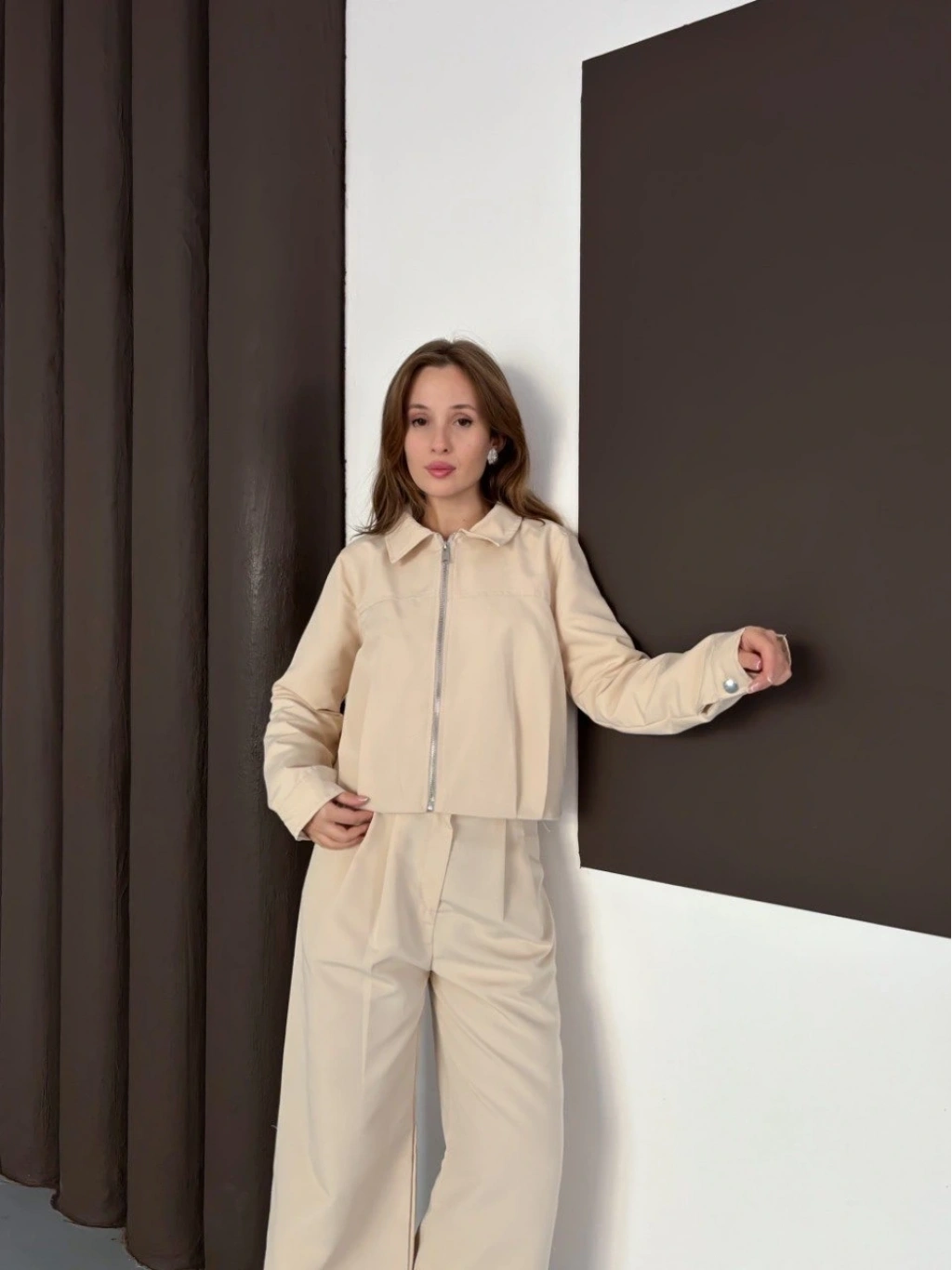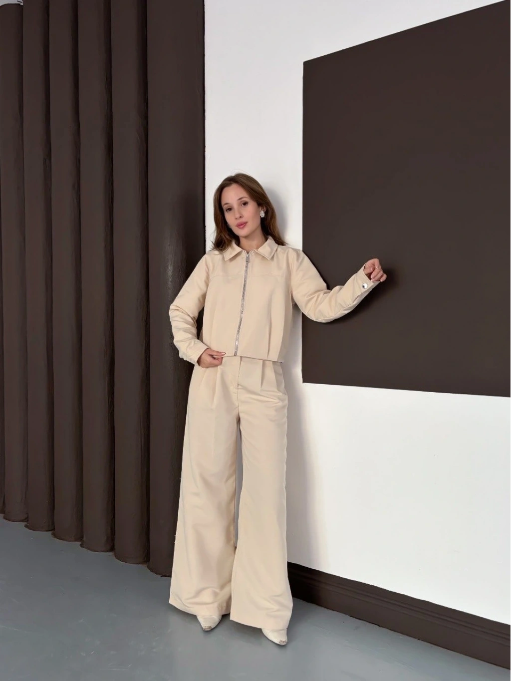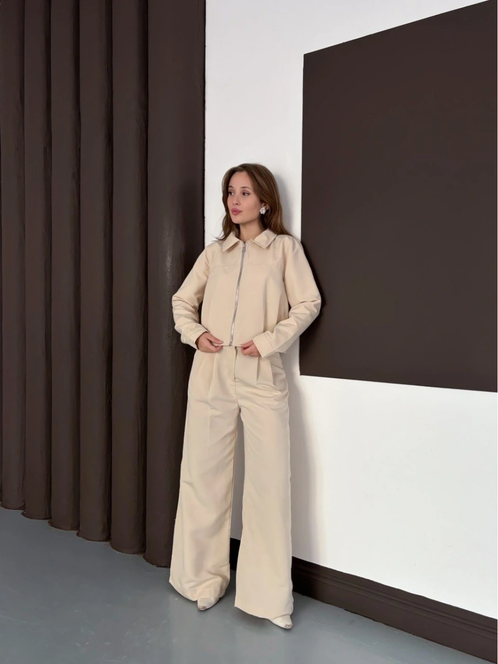 • Trenç takım alt üst bej ons