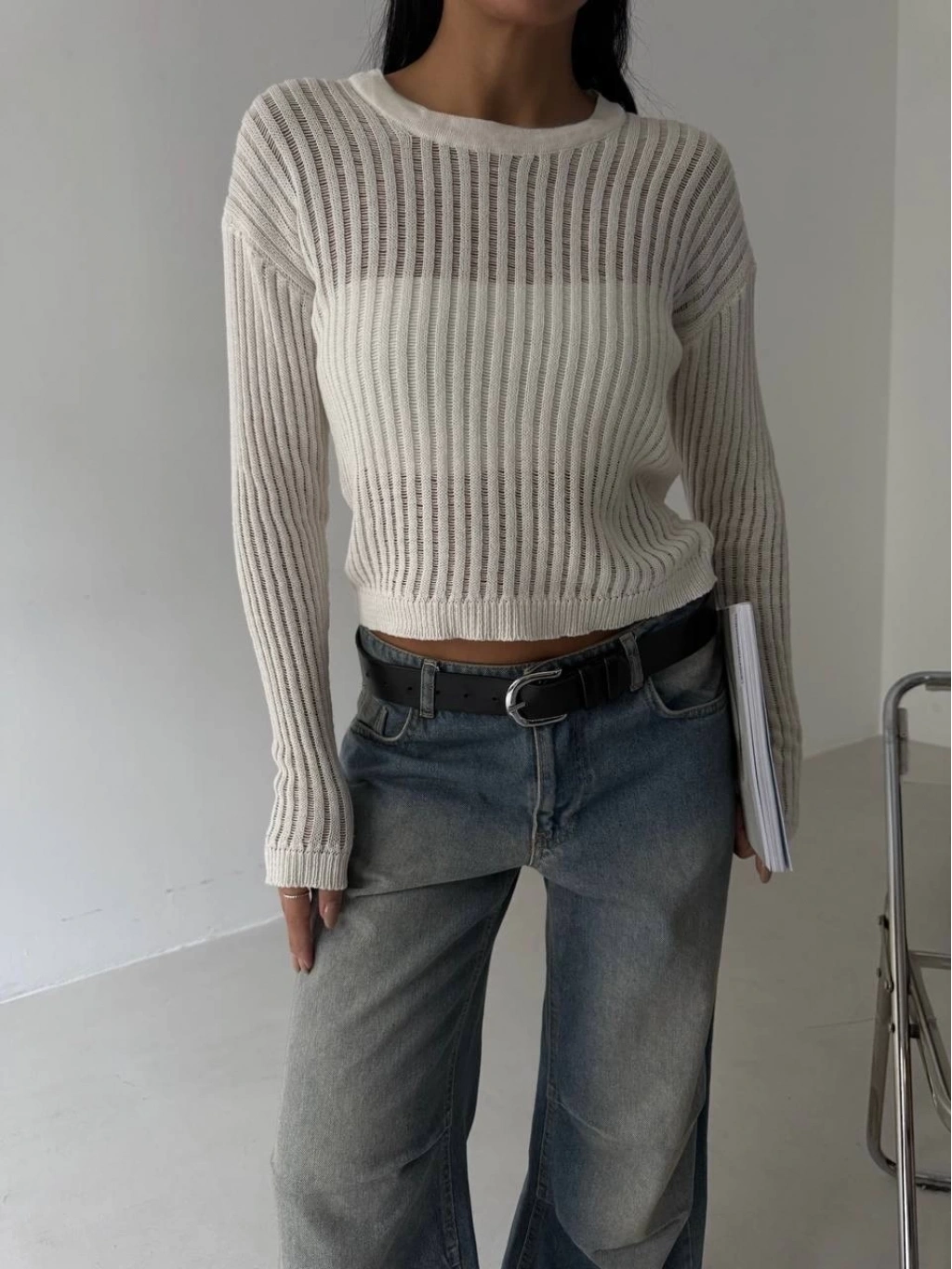 Zarafeti ve modern şıklığı bir arada sunan bu triko transparent bluz, gardırobunuzun en iddialı parçalarından biri olmaya aday. Hafif transparan yapısı ve ince triko dokusuyla, hem günlük kombinlerde hem de özel davetlerde stilinize sofistike bir dokunuş katar.