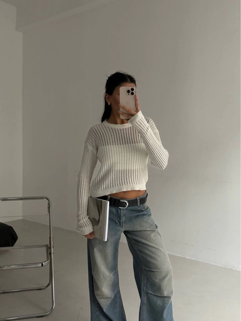Triko transparent bluz beyaz