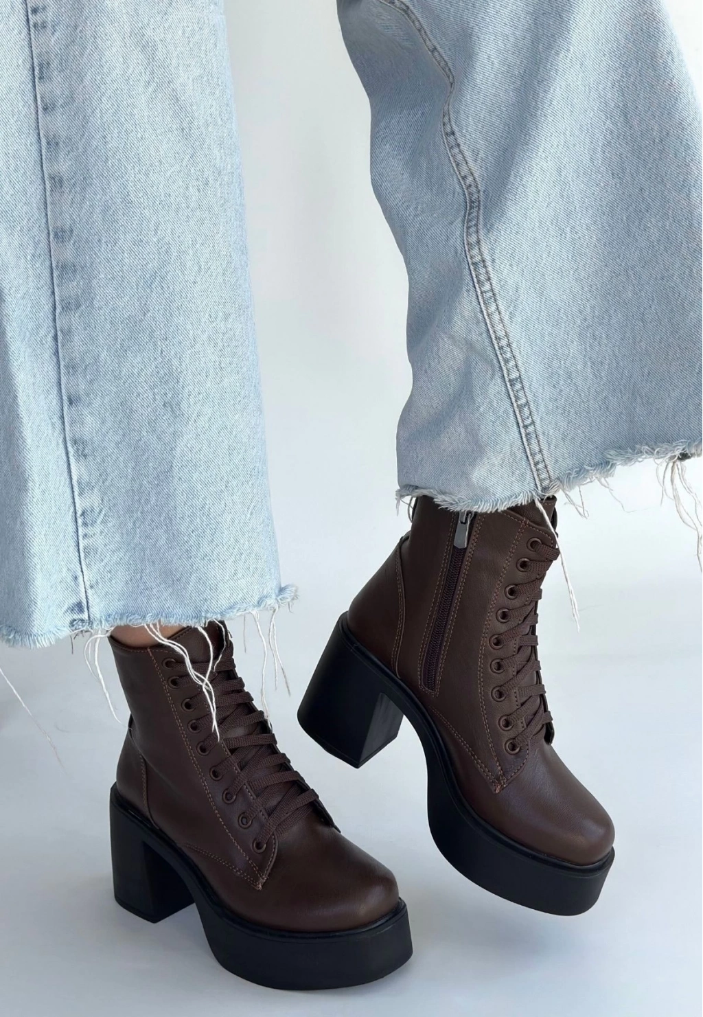 • Tsan Kahverengi Cilt Bağcıklı Topuklu Bot