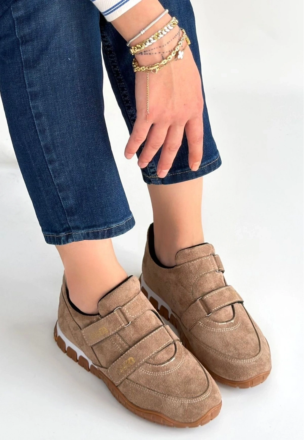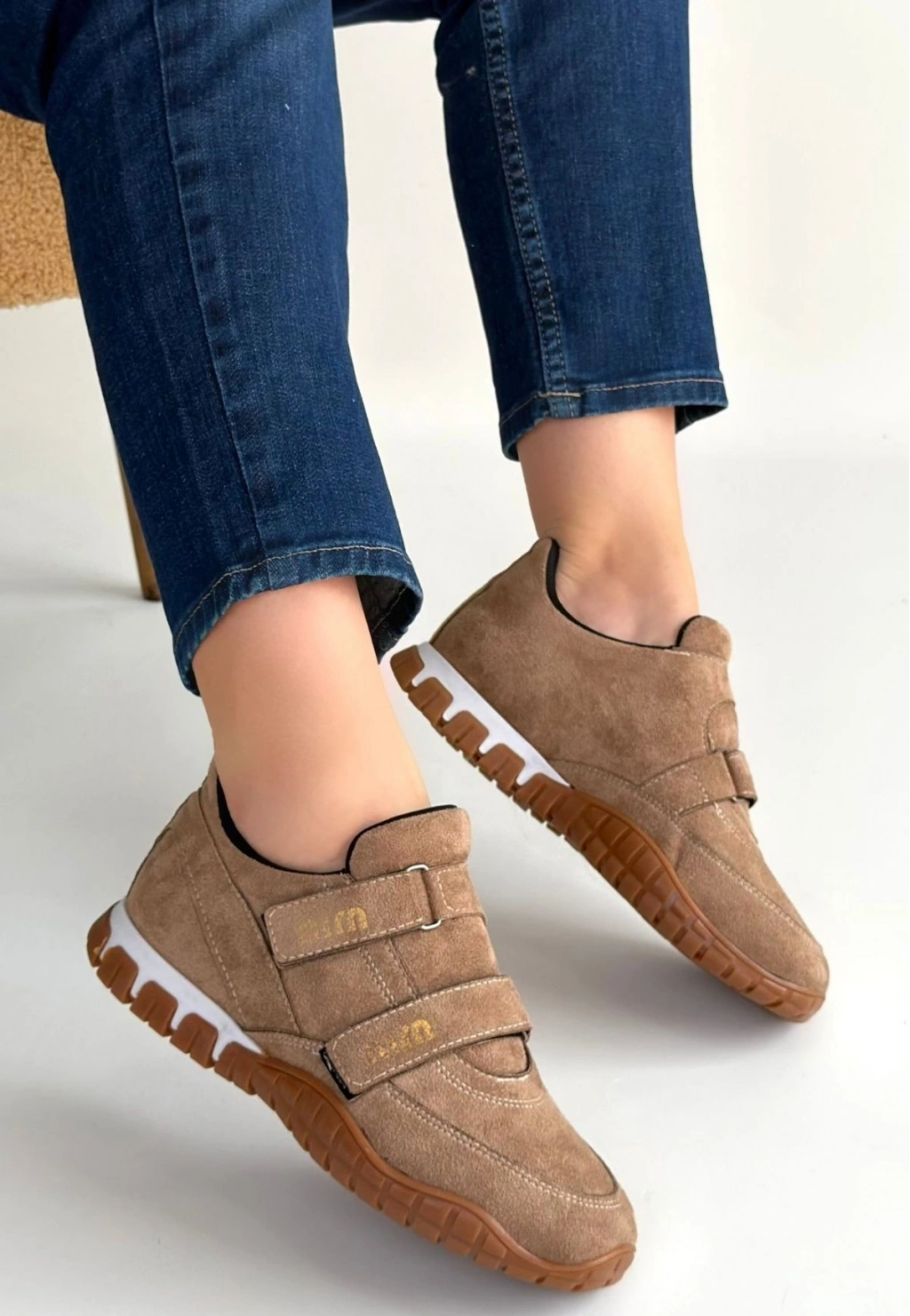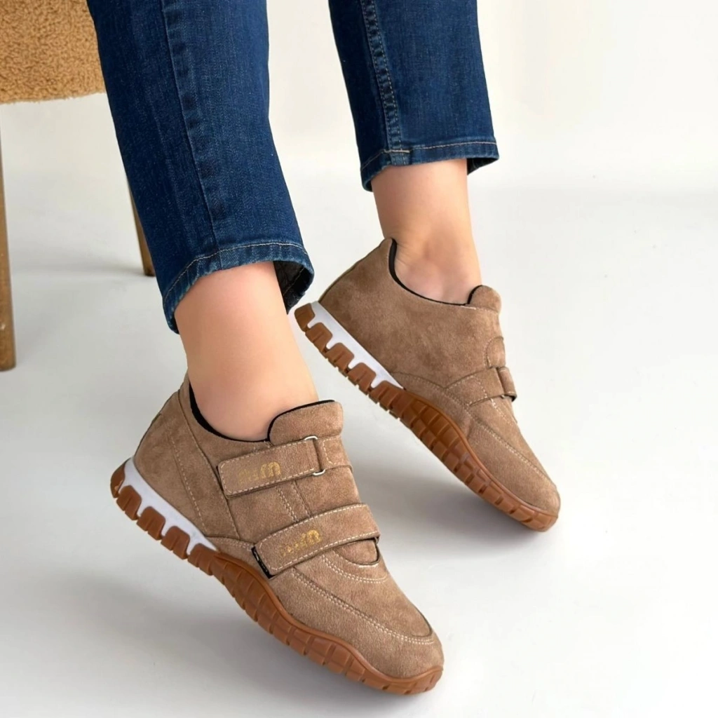 • Tunga Bej Süet Cırt Cırtlı Spor Ayakkabı