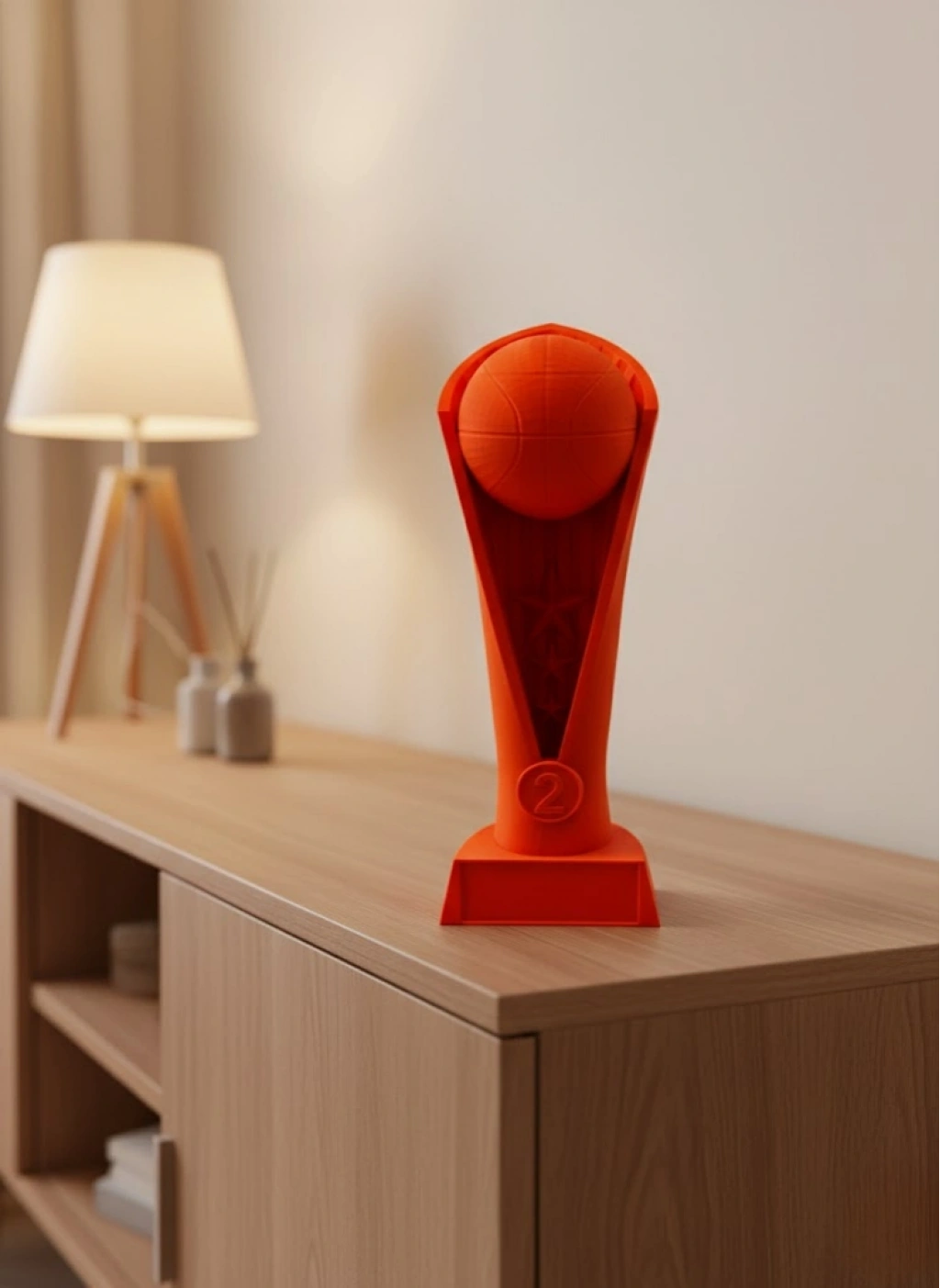 Turuncu Kupa 23 cm, spor temalı dekor sevenlerin koleksiyonlarına güçlü bir ekleme yapmak isteyecekleri şık bir tasarımdır. Parlak turuncu rengi, dikkat çekici duruşu ve basketbol toplu üst bölümü ile ortama modern bir enerji katar. Hafif ancak sağlam yapısıyla kolayca taşınabilir ve her yüzeyde dengede durur. Evde raf üzerinde, ofiste masa üzerinde veya spor alanlarında dekoratif obje olarak sergilenebilir. Ayrıca spor tutkunu çocuklar için motive edici bir masaüstü aksesuarı olarak da oldukça etkilidir. Doğum günü, özel gün veya spor temalı etkinliklerde hediye olarak verebileceğiniz estetik ve anlamlı bir seçimdir.