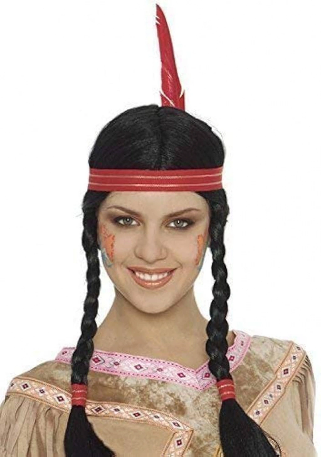 • Etnik Tasarım: Peruk, Hint veya Kızılderili kültürlerinden ilham alan özgün bir tasarıma sahip. Örgülü saçlar ve tüy detayları, peruğa otantik bir hava katıyor.