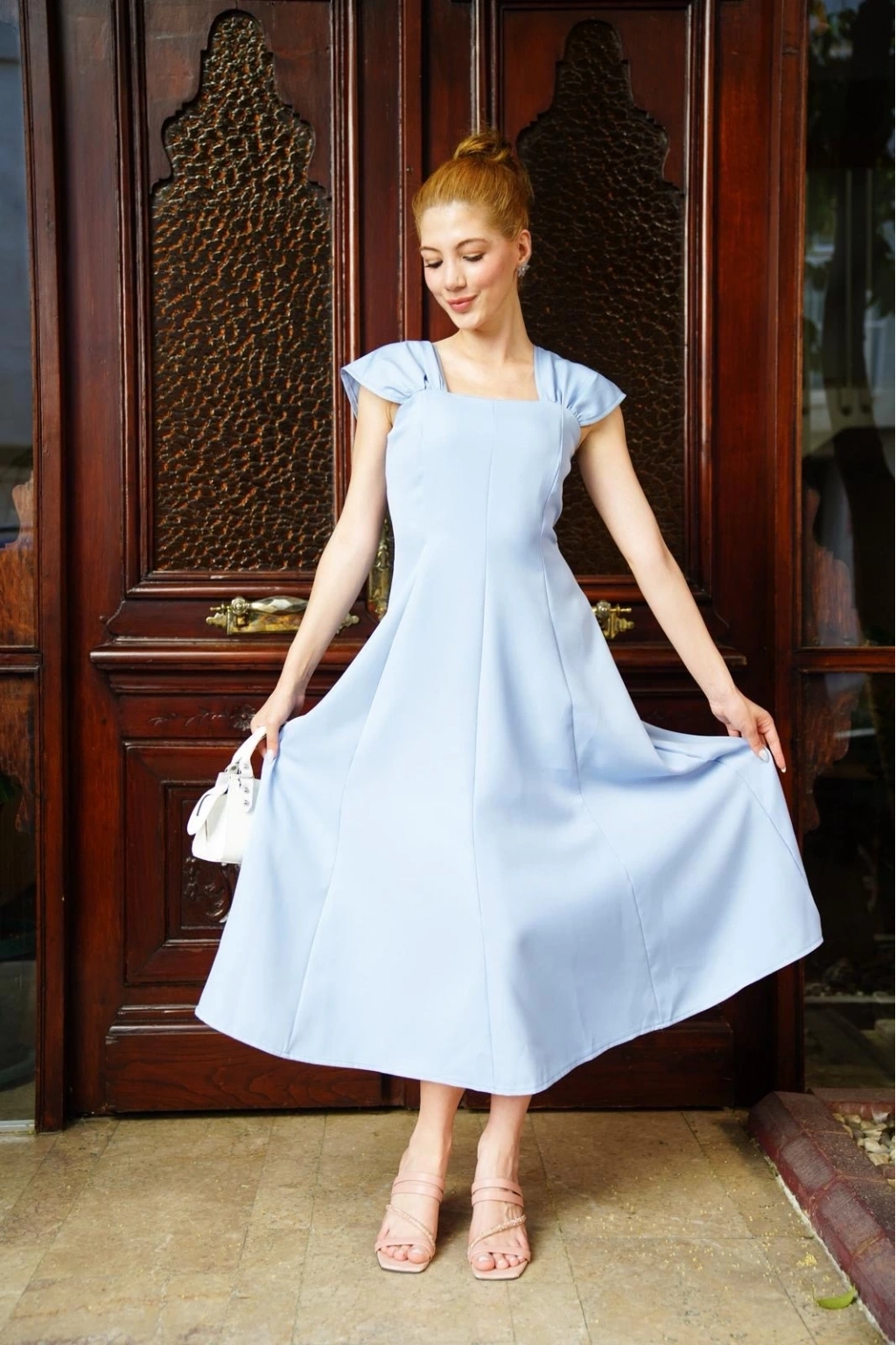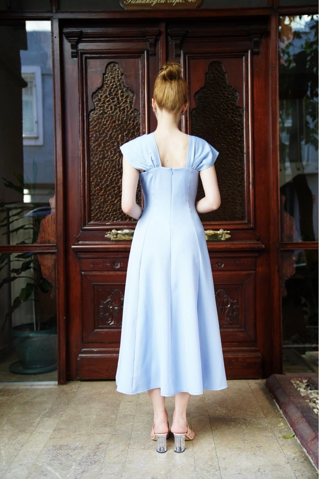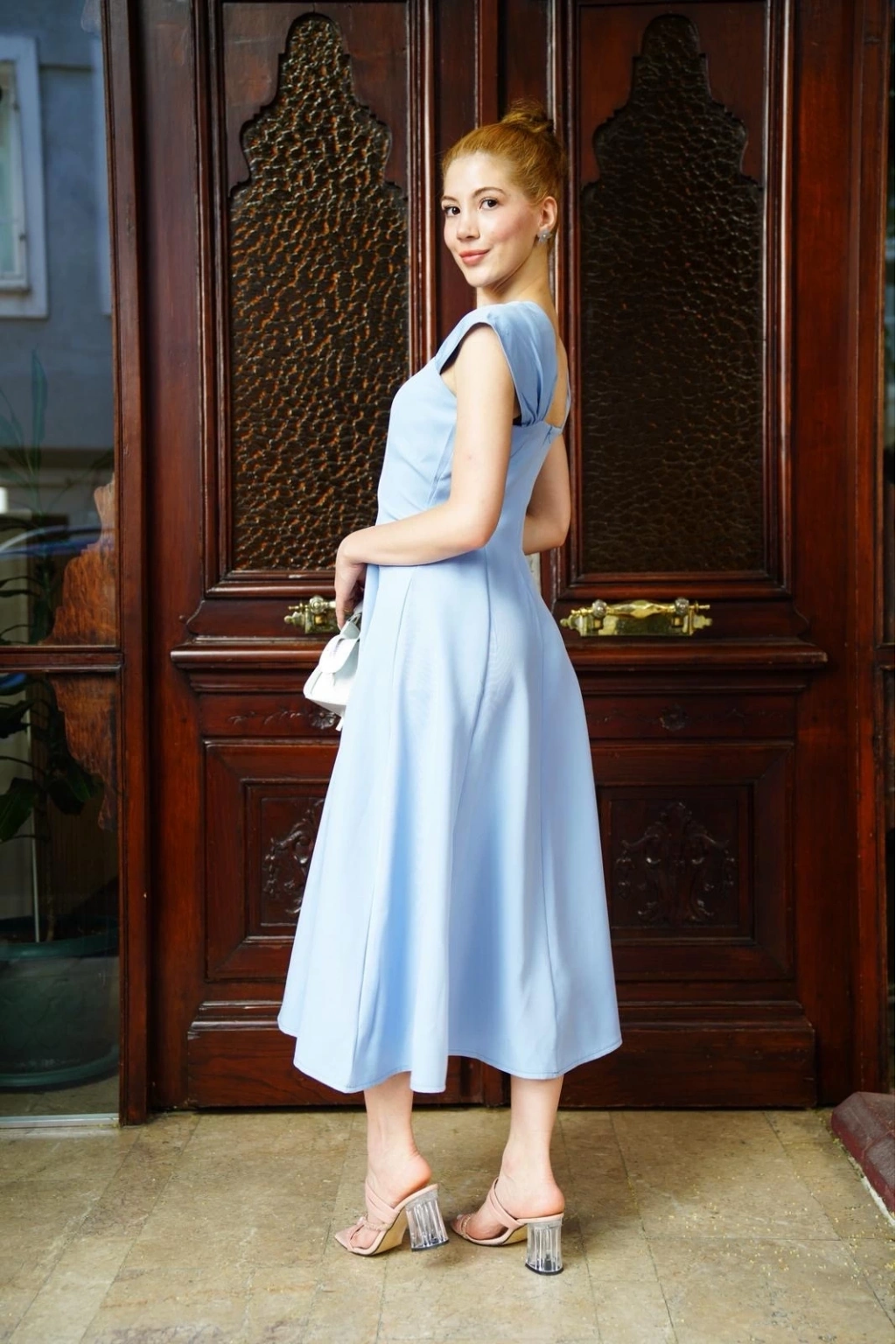 • U yaka prenses elbise mavi s255101