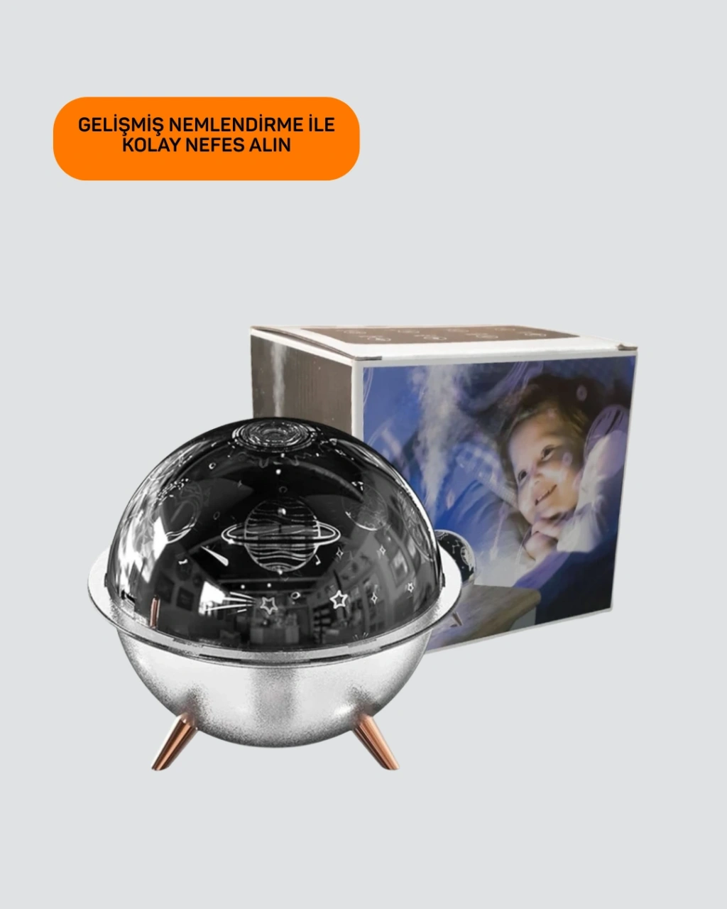 Uzay Temalı Projeksiyonlu Nemlendirici USB Güçlü Gece Lambası