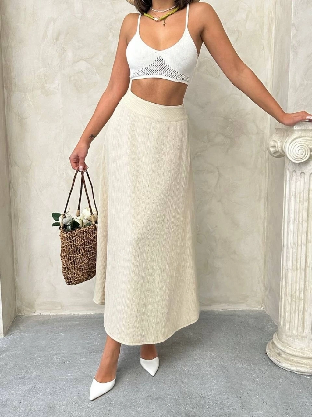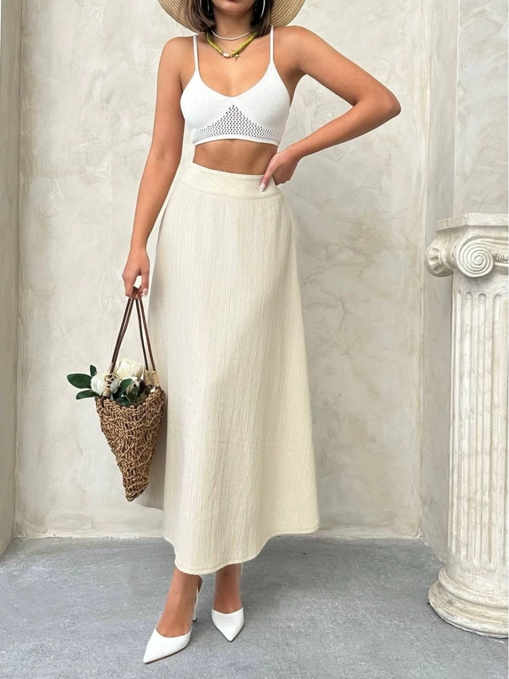 KAZAX uzun astarlı eteğiyle tarzınızı yansıtın ve her ortamda farkınızı ortaya koyun.