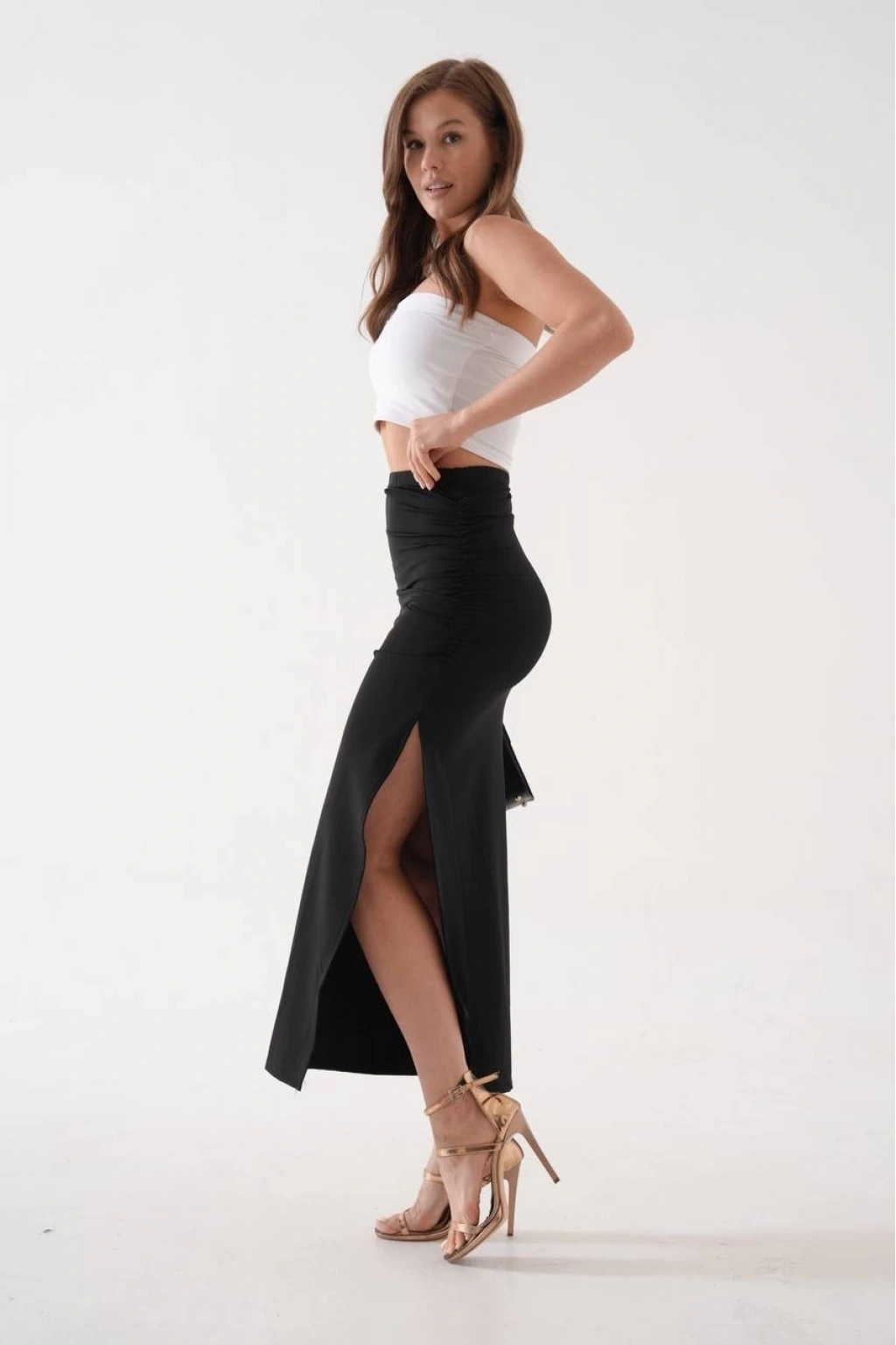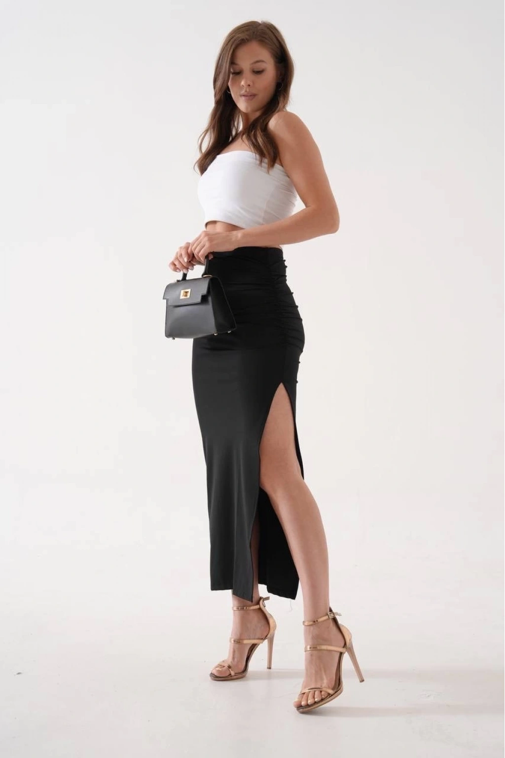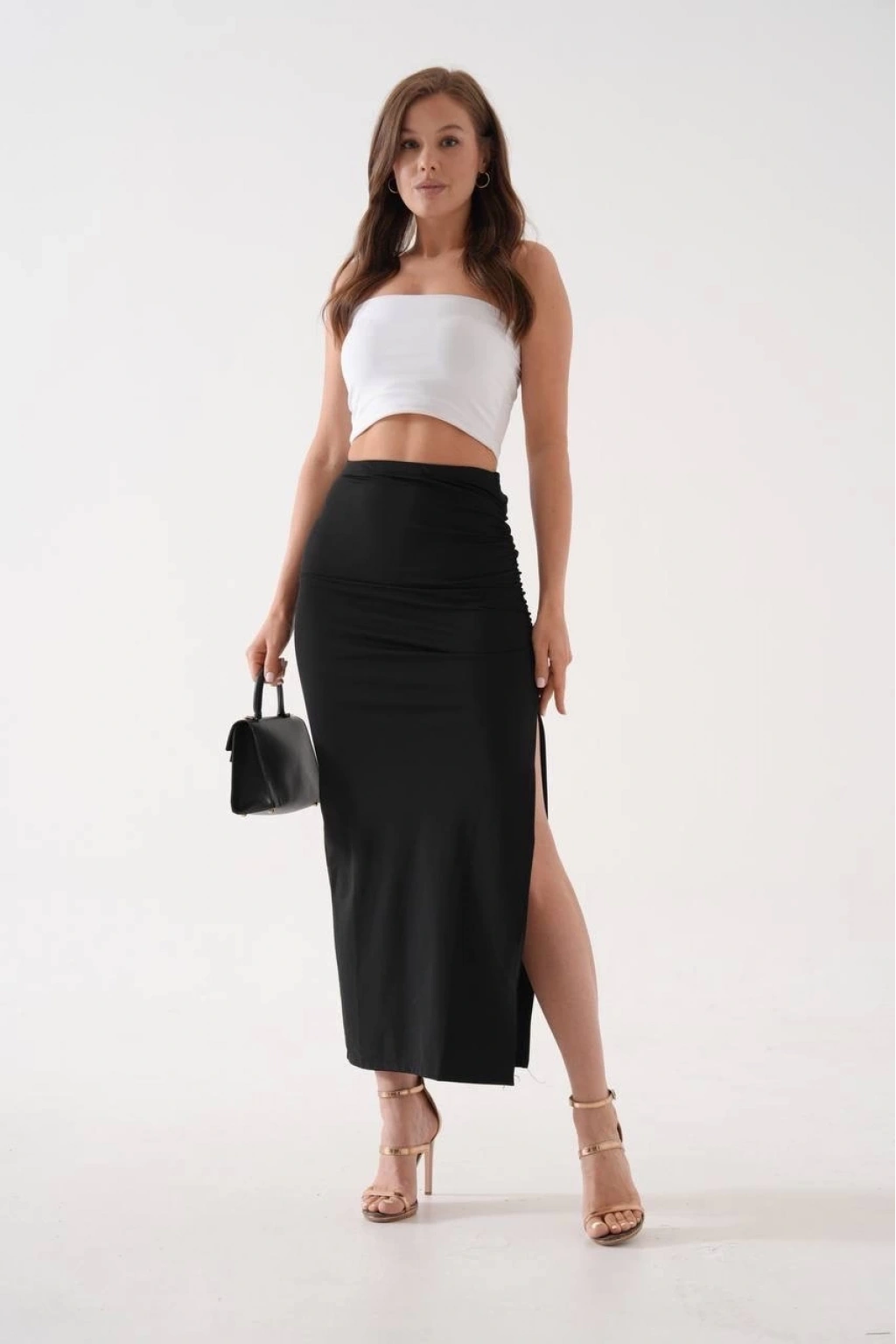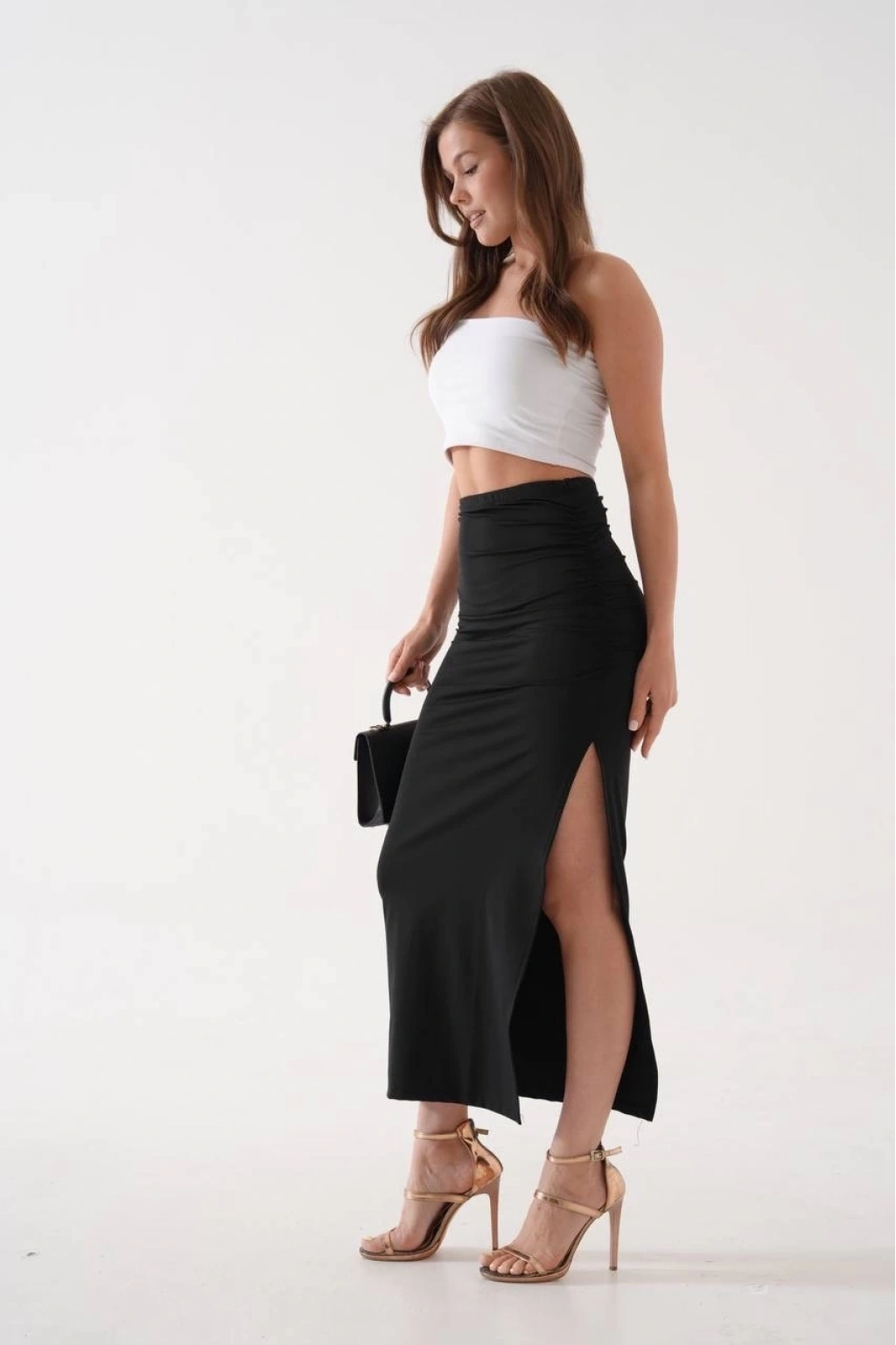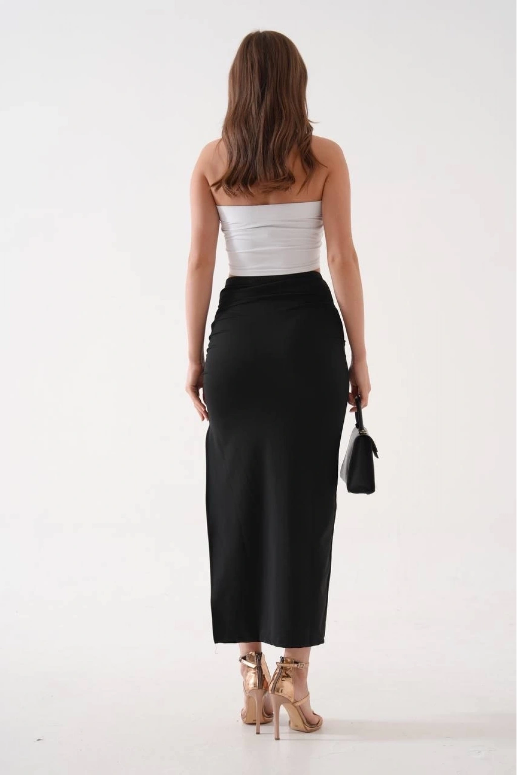 • Uzun yırtmaçlı ince kumaş etek siyah
