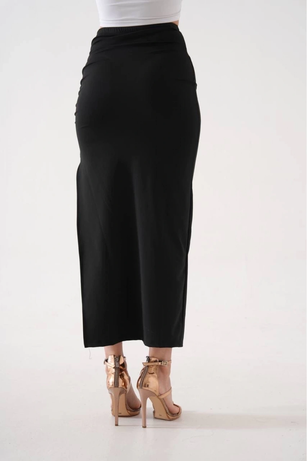 Uzun yırtmaçlı ince kumaş etek siyah