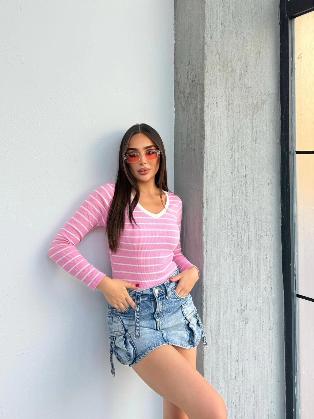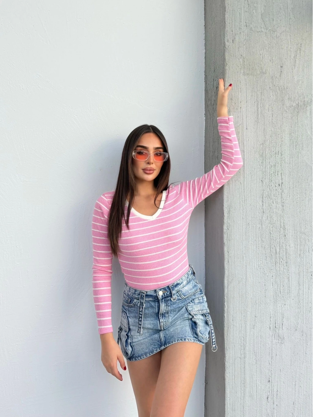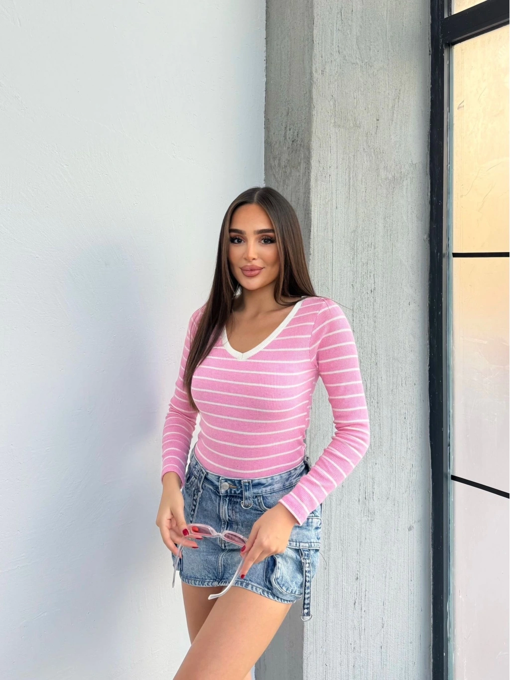 • Şık ve feminen tasarımıyla öne çıkan pembe bluz.