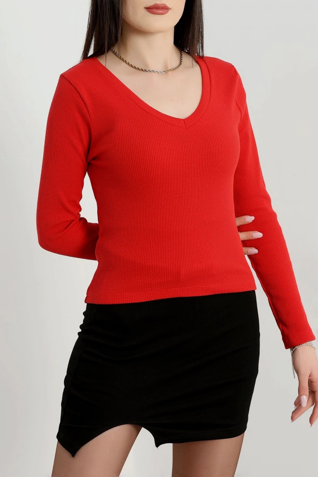 • V yaka kaşkorse bluz kırmızı a3699