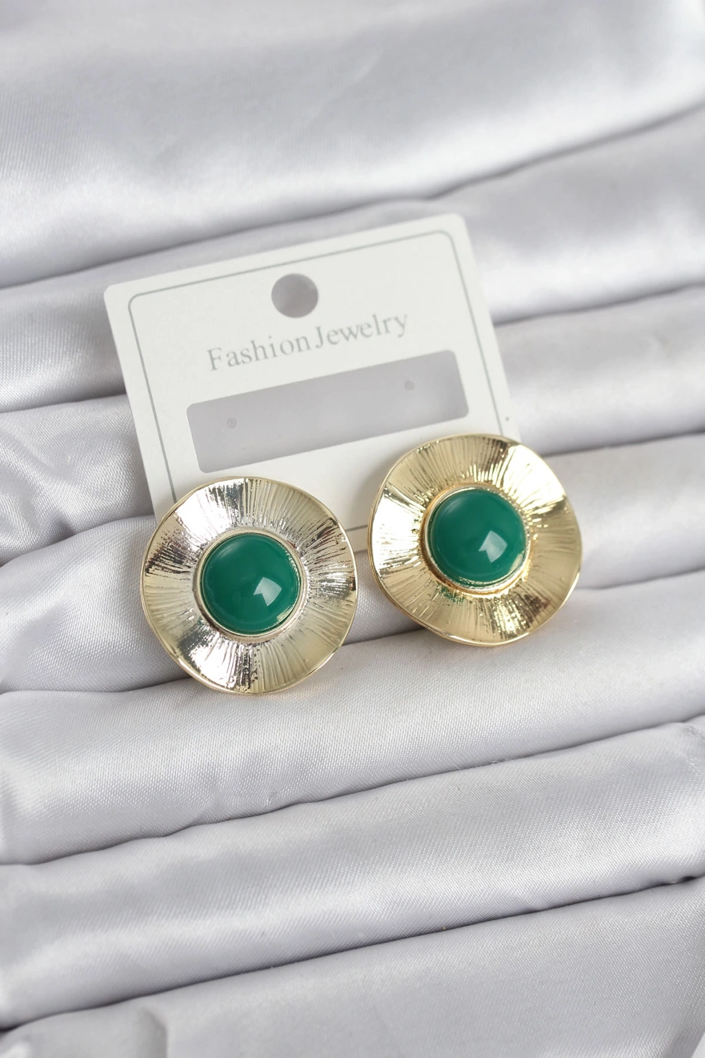 Vintage Model Yeşil Gold Renk Pirinç Kadın Küpe