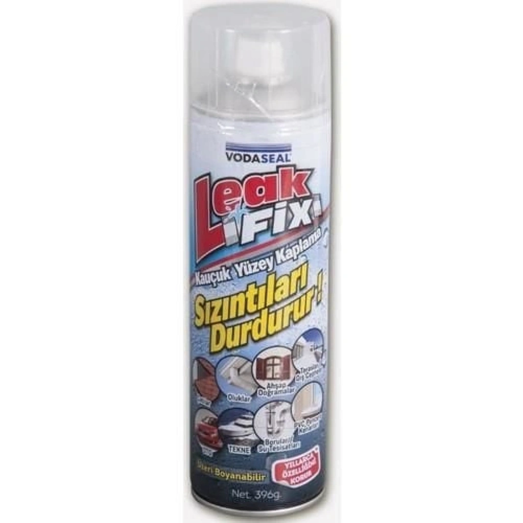 LeakFix; su sızıntılarına karşı yüzeyleri kaplayan, örten ve koruyan, kullanımı kolay bir kauçuk kaplama mastiği, bir sızdırmazlık, yalıtım malzemesidir. Yüzeye sıkıldığında, kauçuk sıvı; çatlak ve deliklere süzülür, nüfuz eder ve o bölgedeki su kaçağı veya her türlü sızıntıyı hızlı bir şekilde durdurur, önler. 396gr. lık 1 adet sprey teneke kutu ile kaplama kalınlığına bağlı olarak yaklaşık 1 m² alan kaplar. Kuruduktan sonra üzeri istenilen renge boyanabilir.