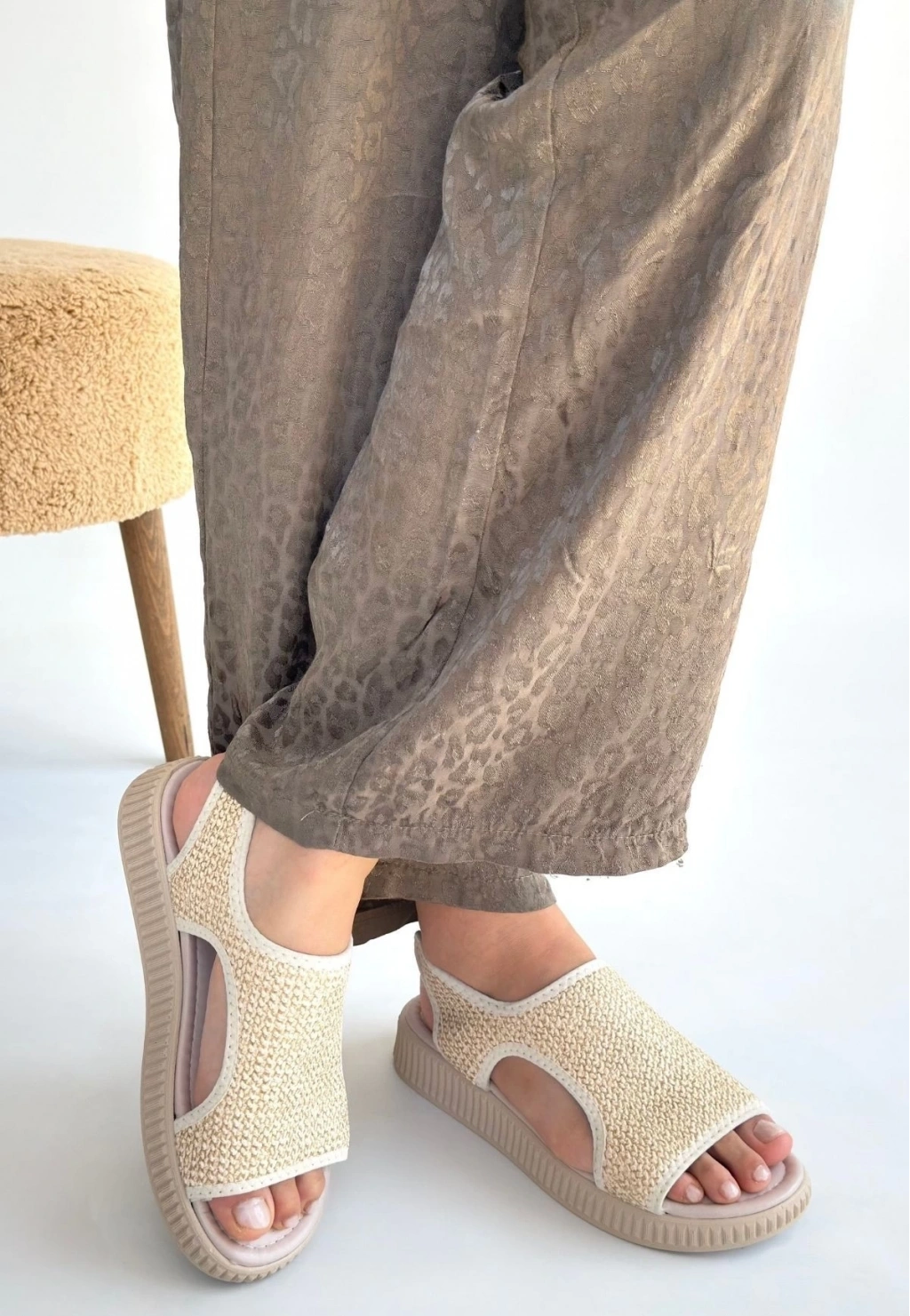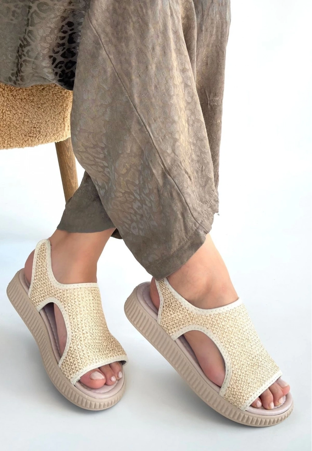 Wayi Bej Hasır Cilt Sandalet