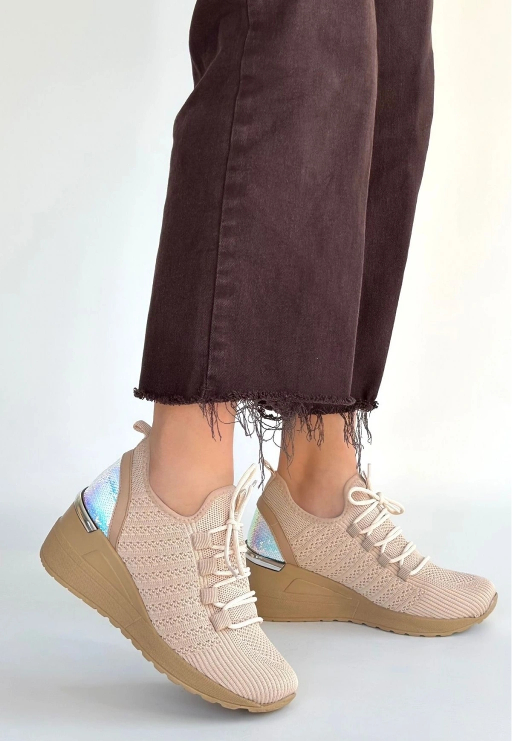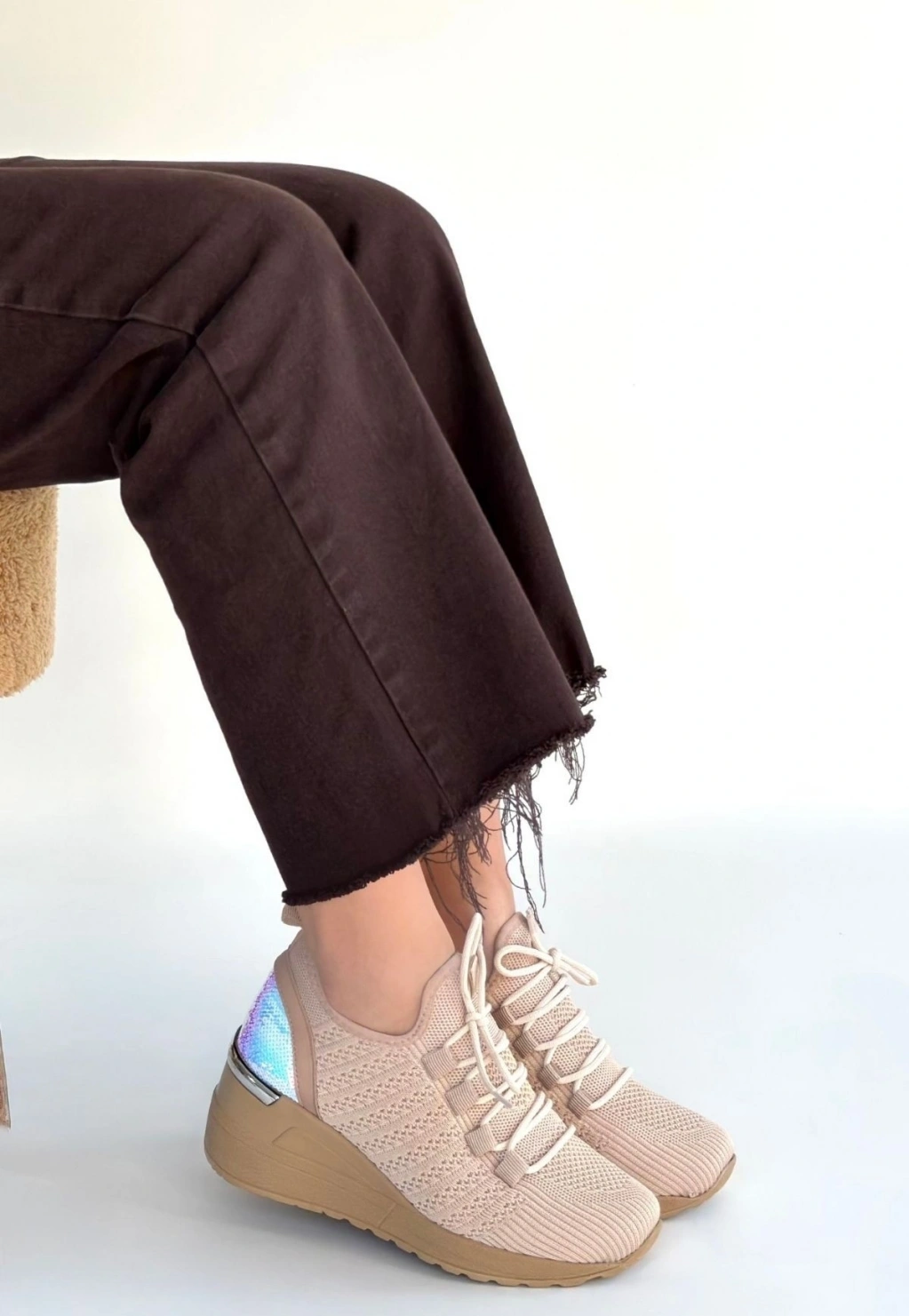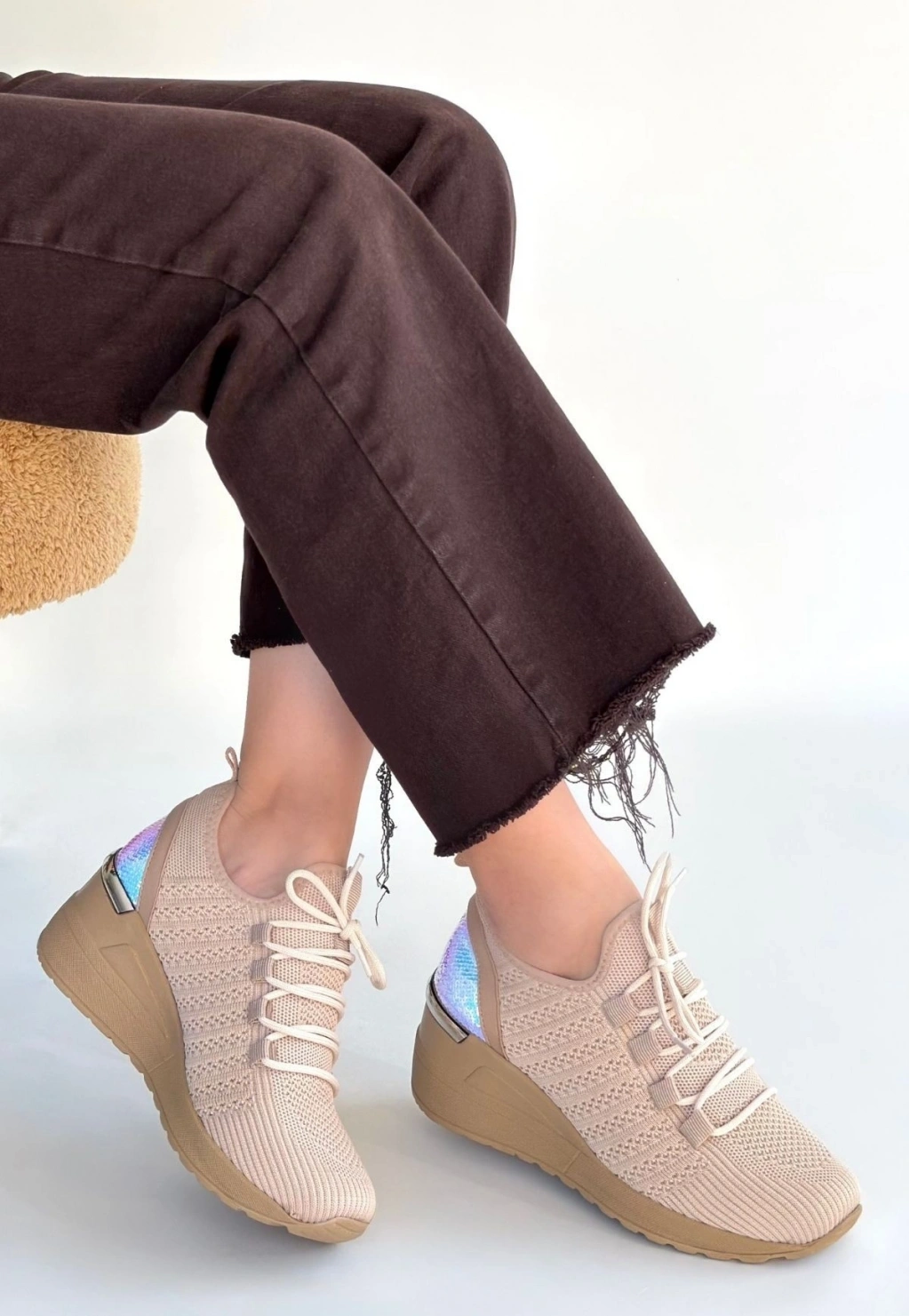 • Weor Bej Triko Bağcıklı Spor Ayakkabı