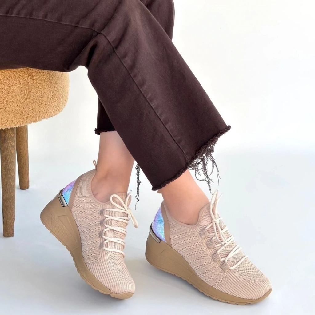 Weor Bej Triko Bağcıklı Spor Ayakkabı