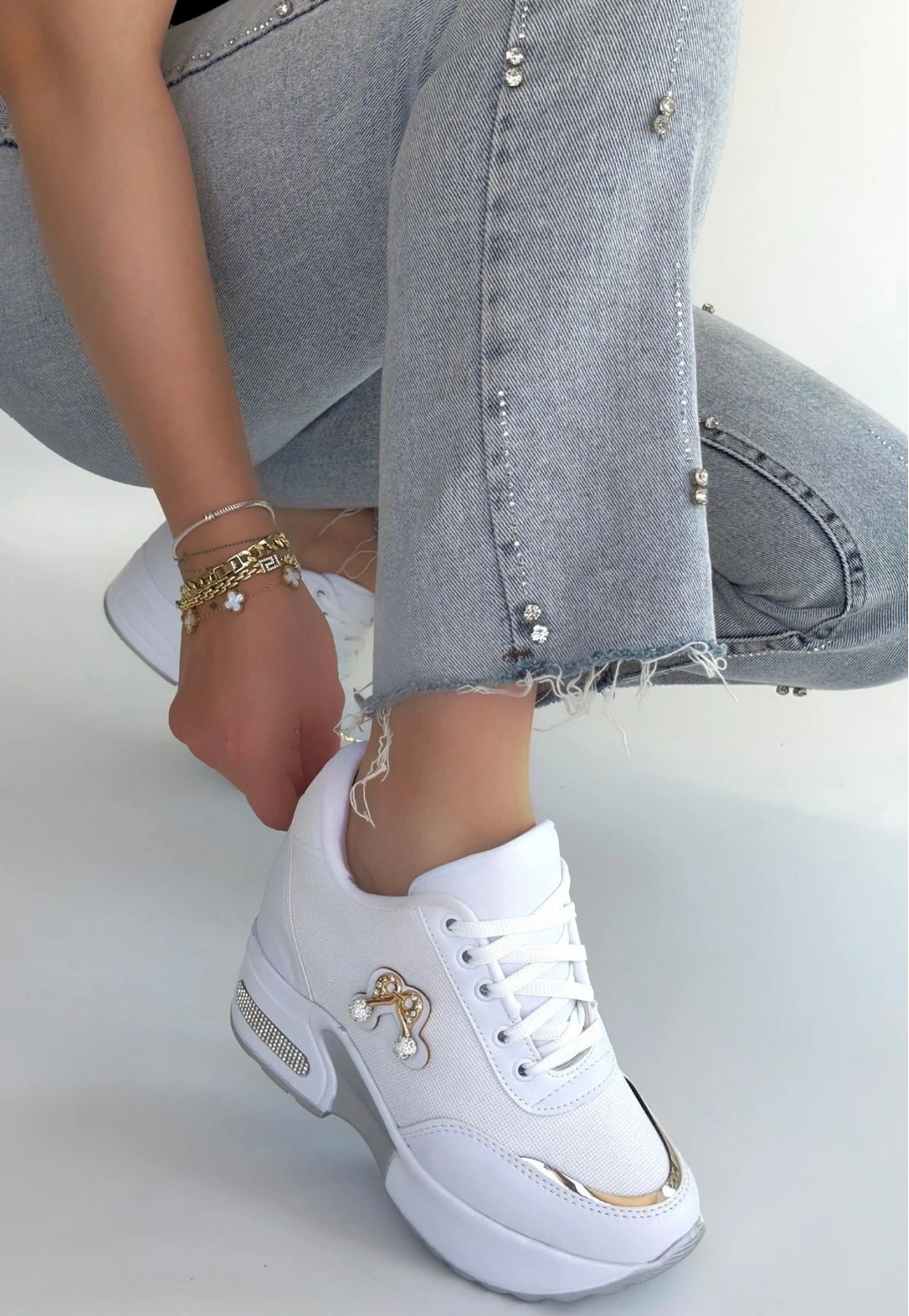 • Wody Beyaz Cilt Simli Bağcıklı Spor Ayakkabı