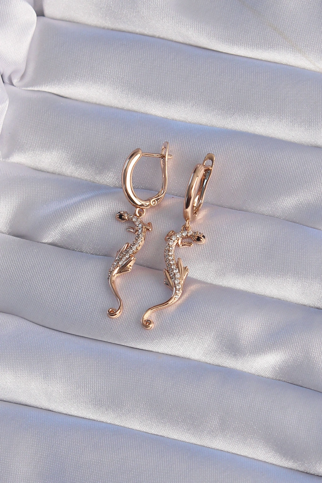 XUPİNG Rose Renk Zirkon Taşlı Kertenkele Model Halka Küpe