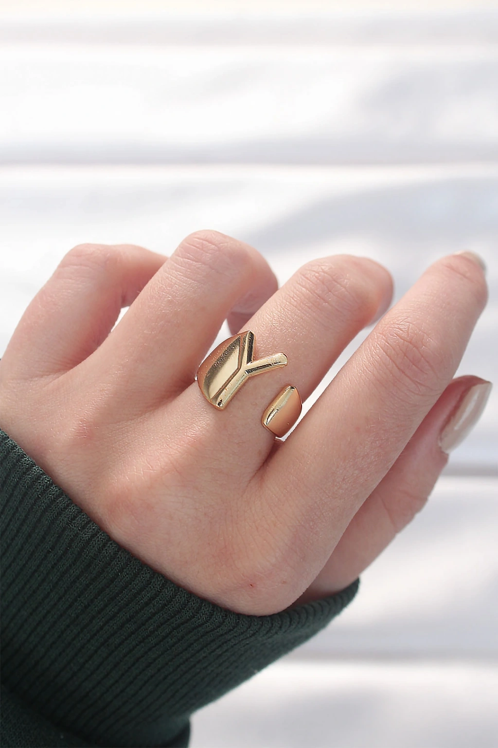 Y Harfli Altın Renk Ayarlanabilir Yüzük