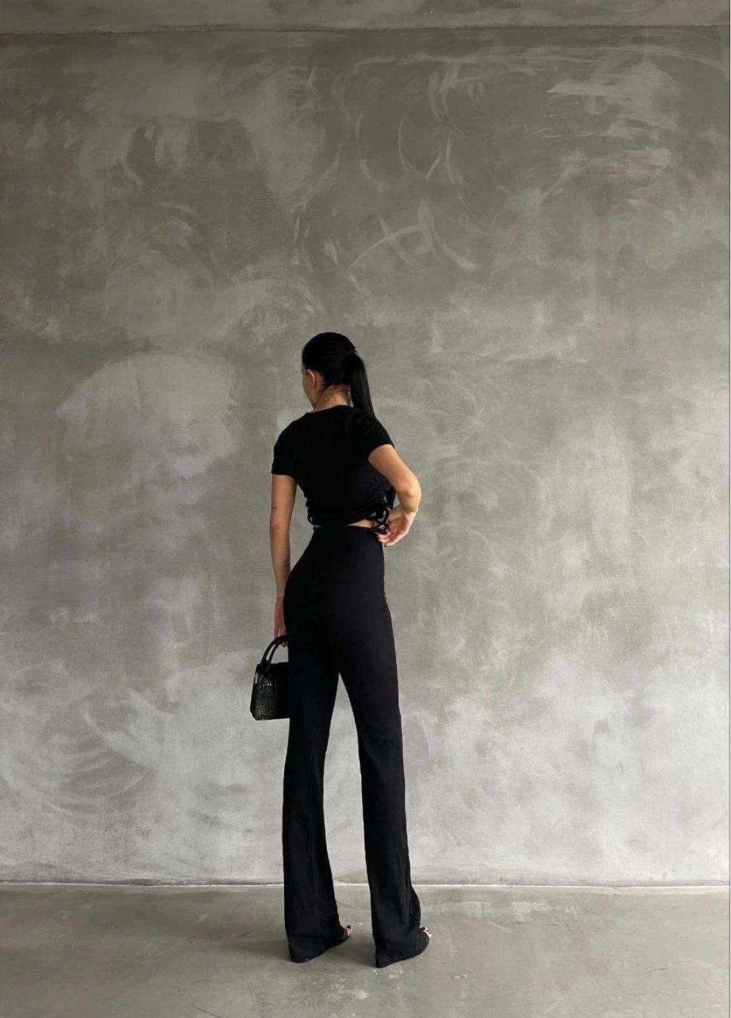 • Yanları tünel detaylı pantolonu, uyumlu bluzu ile kombin tamamlar.