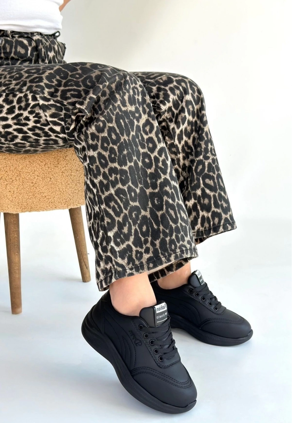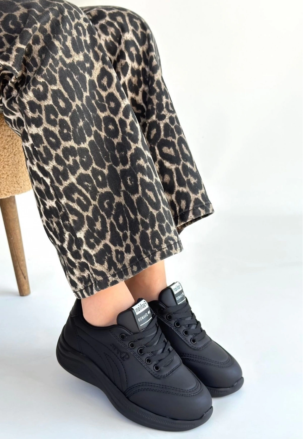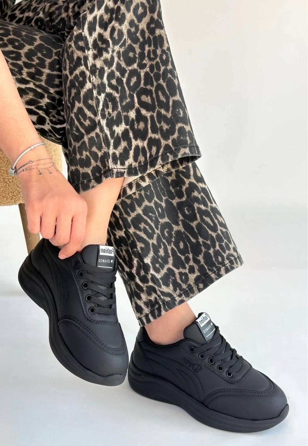 • Yejja Siyah Cilt Bağcıklı Spor Ayakkabı