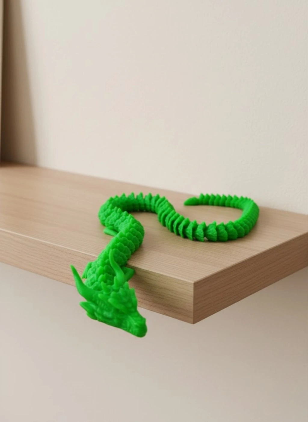 Yeşil Hareketli Ejderha Figürü, mitoloji ve fantastik dünyaların büyüsünü yaşam alanlarınıza taşıyan özel bir dekoratif üründür. 60 cm uzunluğundaki esnek gövdesi ve eklemli yapısı sayesinde ejderha farklı şekillerde konumlandırılabilir. Detaylı pullu yüzeyi ve baş tasarımı, ürüne gerçekçi ve güçlü bir görünüm kazandırır.Yeşil renk seçeneği, ejderhaya canlılık ve doğallık katarak siyah ve koyu tonlu dekorlardan ayrışmasını sağlar. Raf, masa, TV ünitesi veya vitrin üzerinde sergilendiğinde bulunduğu alanın atmosferini tamamen değiştirir. Fantastik temalı dekorasyonlar ve koleksiyonlar için güçlü bir tamamlayıcıdır.Dayanıklı yapısı sayesinde uzun süre formunu korur. Hem dekoratif hem de koleksiyonluk olarak değerlendirilebilecek bu ejderha figürü, kendiniz için veya fantastik figürlere ilgi duyan sevdikleriniz için dikkat çekici ve özel bir hediye seçeneği sunar.
