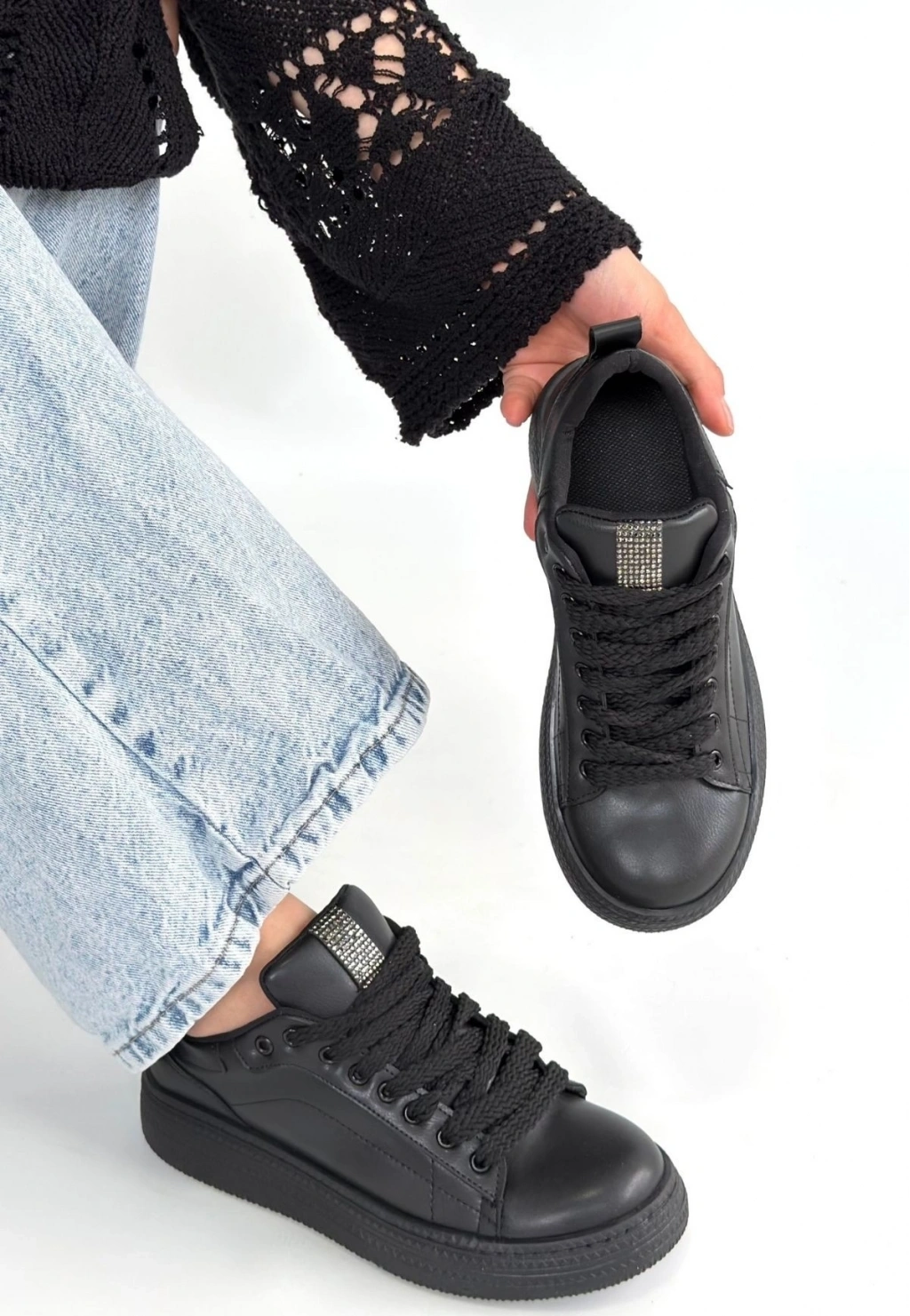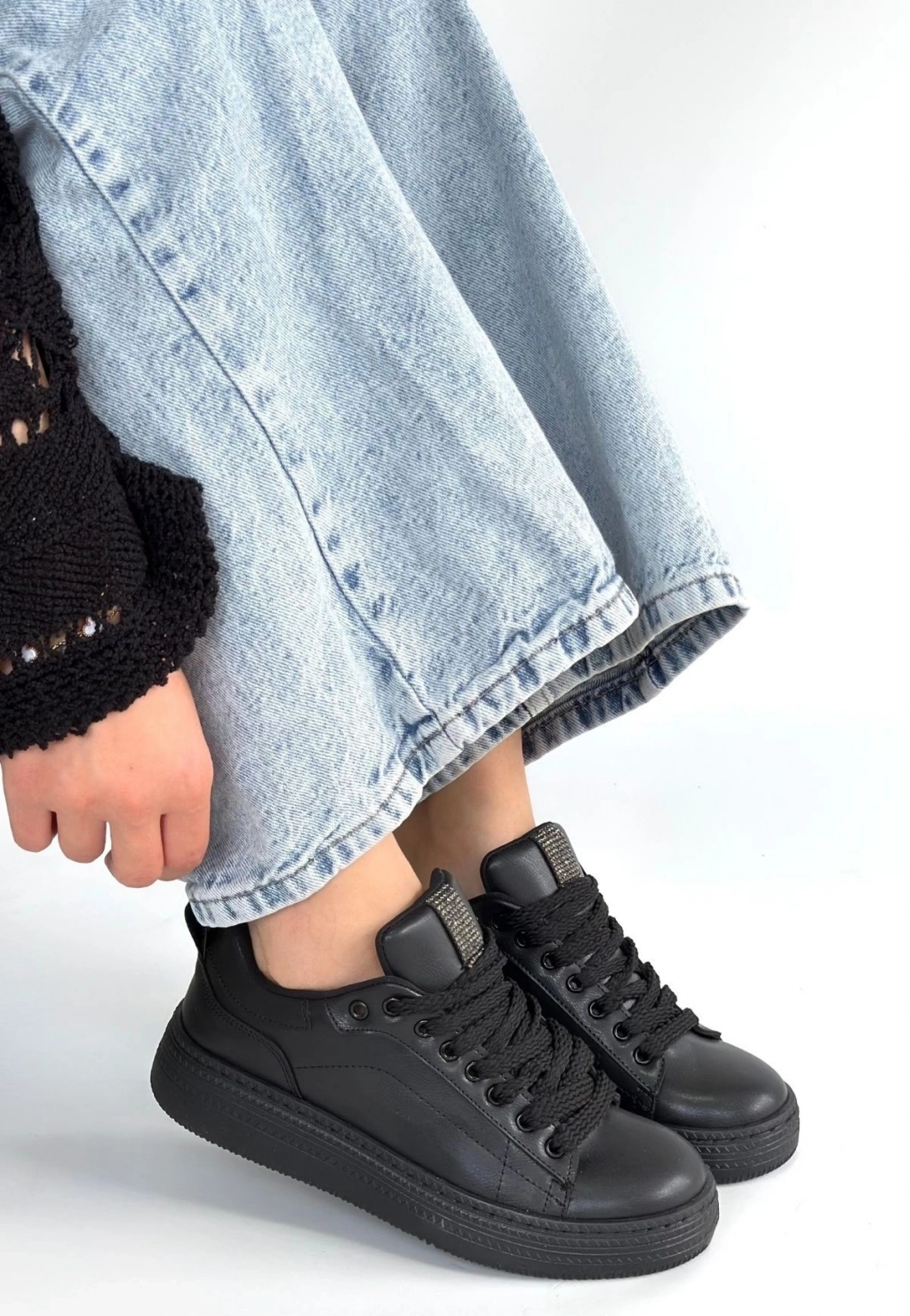 • Yier Siyah Cilt Bağcıklı Spor Ayakkabı