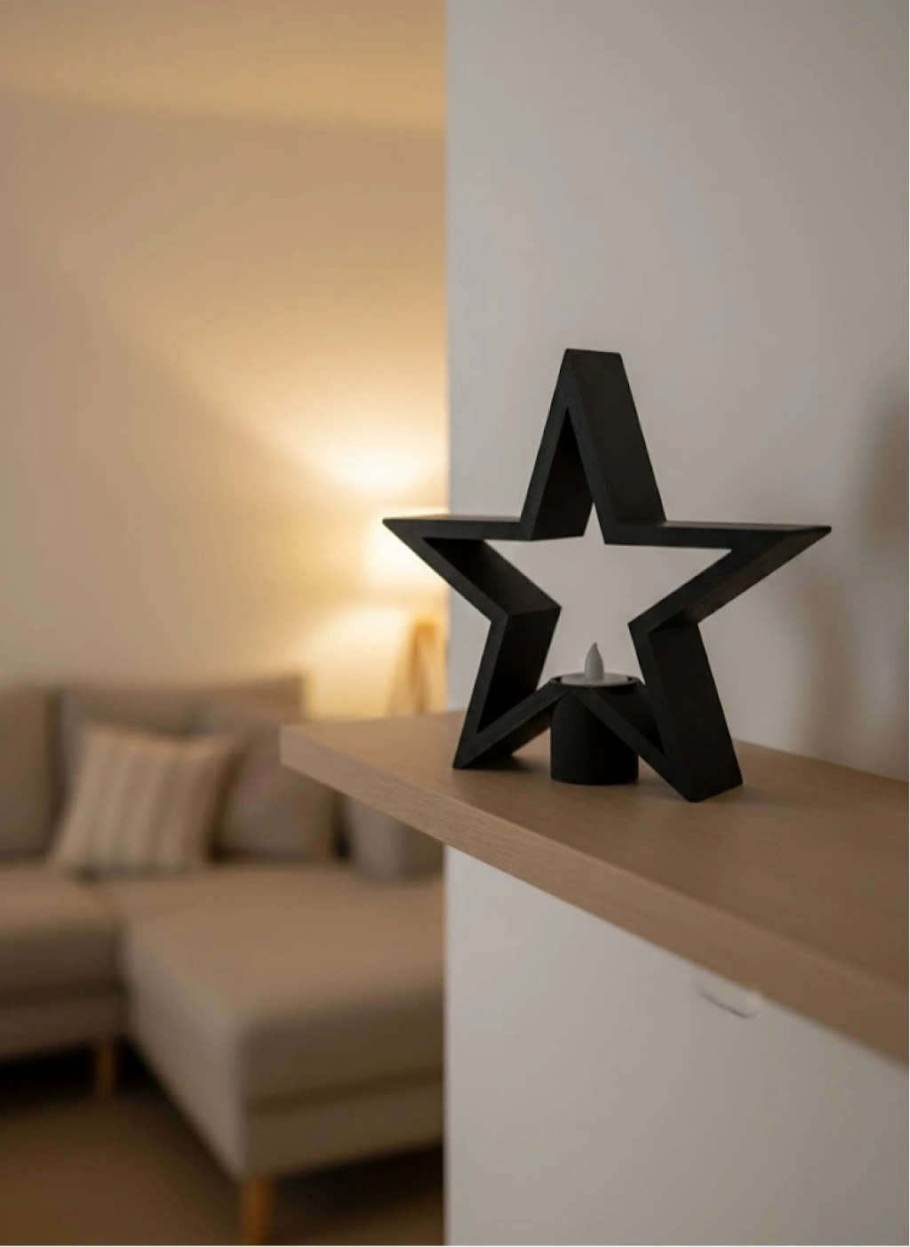 Yıldız Mumluk Siyah Modern Salon ve Raf Dekoru