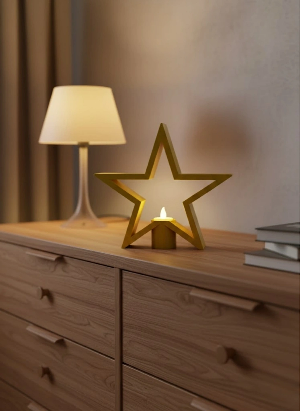 Yıldız Şeklinde Sarı Mumluk Loş Işık Ev Aksesuarı