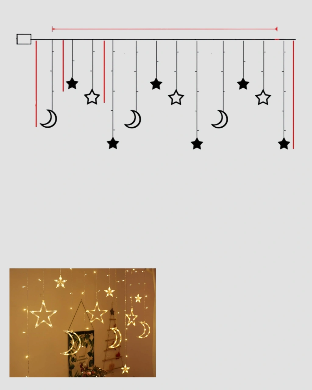 Yıldız ve Ay Figürlü Prizli Perde LED Işık Romantik Ortam Aydınlatması
