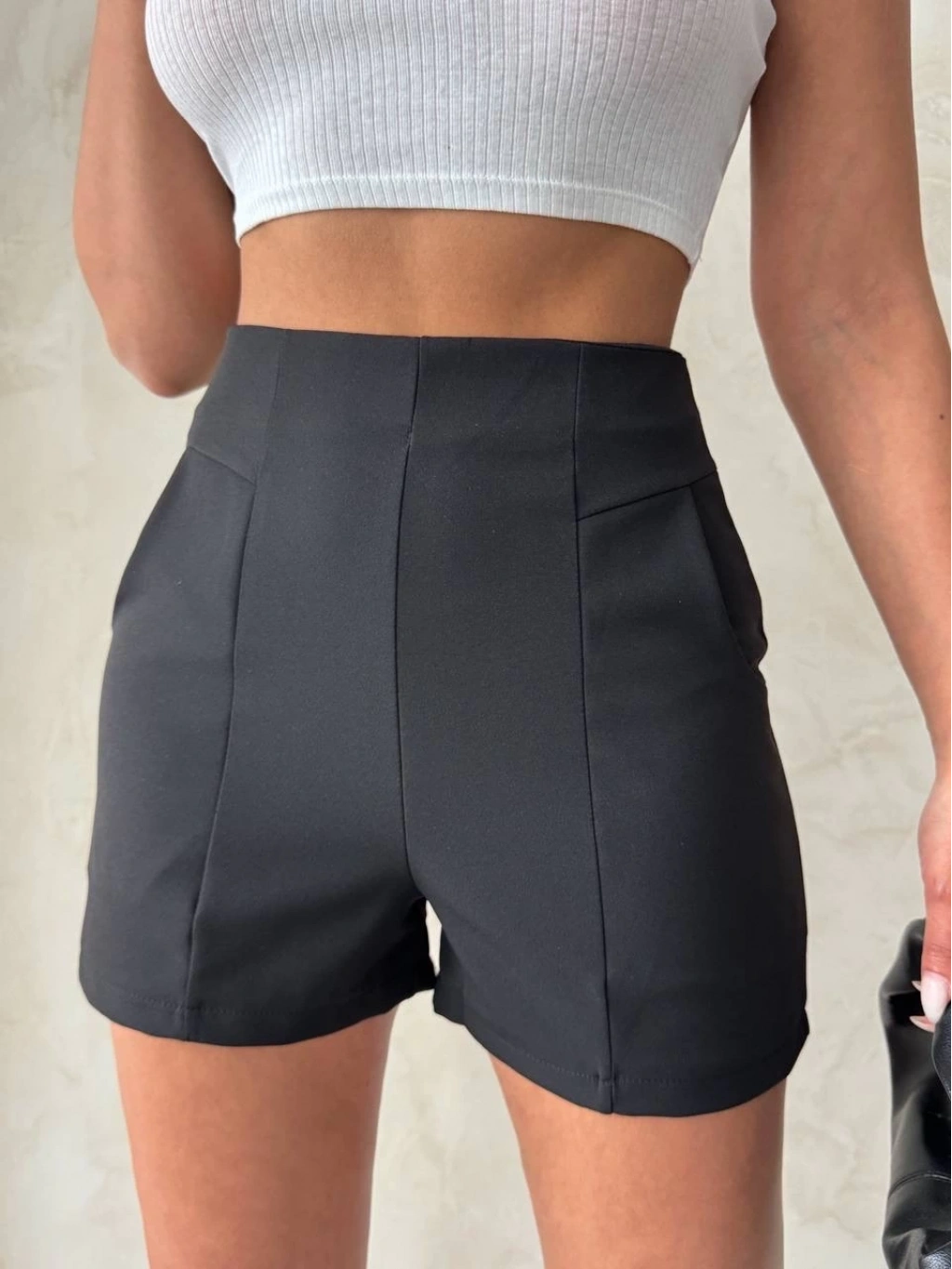 • Yüksek bel parçalı double kumaş şort s25312